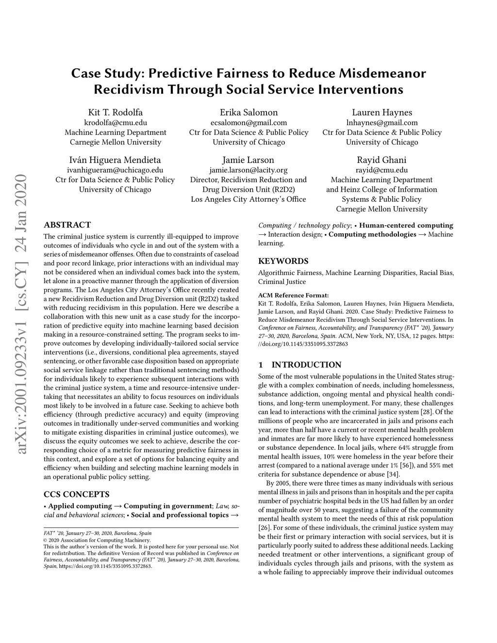 Case Study: Predictive Fairness to Reduce Misdemeanor Recidivism Through