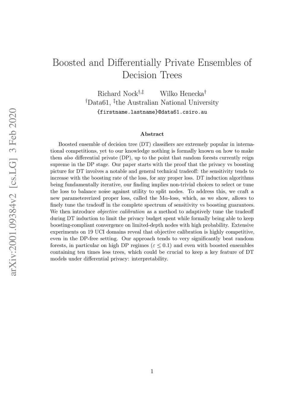 Boosted ensemble of decision tree (DT) classifiers are extremely popular in international competitions, yet to our knowledge nothing is formally known on how to make them \textit{also} differential private (DP), up to the point that random forests currently reign supreme in the DP stage. Our paper starts with the proof that the privacy vs boosting picture for DT involves a notable and general technical tradeoff: the sensitivity tends to increase with the boosting rate of the loss, for any proper loss. DT induction algorithms being fundamentally iterative, our finding implies non-trivial choices to select or tune the loss to balance noise against utility to split nodes. To address this, we craft a new parametererized proper loss, called the M-loss, which, as we show, allows to finely tune the tradeoff in the complete spectrum of sensitivity vs boosting guarantees. We then introduce \textit{objective calibration} as a method to adaptively tune the tradeoff during DT induction to limit the privacy budget spent while formally being able to keep boosting-compliant convergence on limited-depth nodes with high probability. Extensive experiments on 19 UCI domains reveal that objective calibration is highly competitive, even in the DP-free setting. Our approach tends to very significantly beat random forests, in particular on high DP regimes () and even with boosted ensembles containing ten times less trees, which could be crucial to keep a key feature of DT models under differential privacy: interpretability.