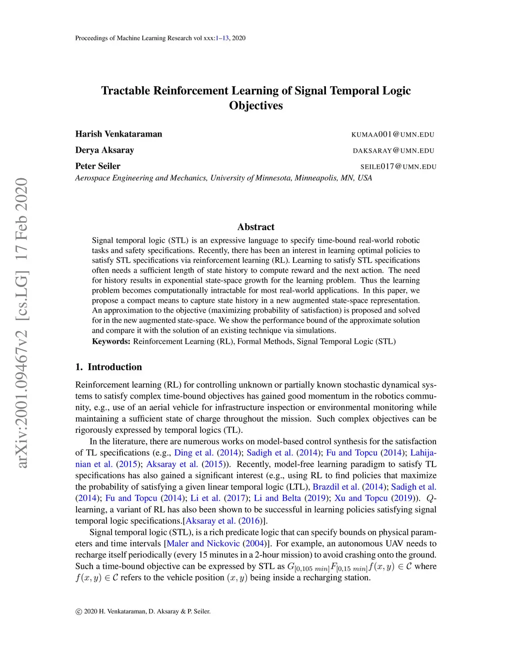 Tractable Reinforcement Learning of Signal Temporal Logic Objectives