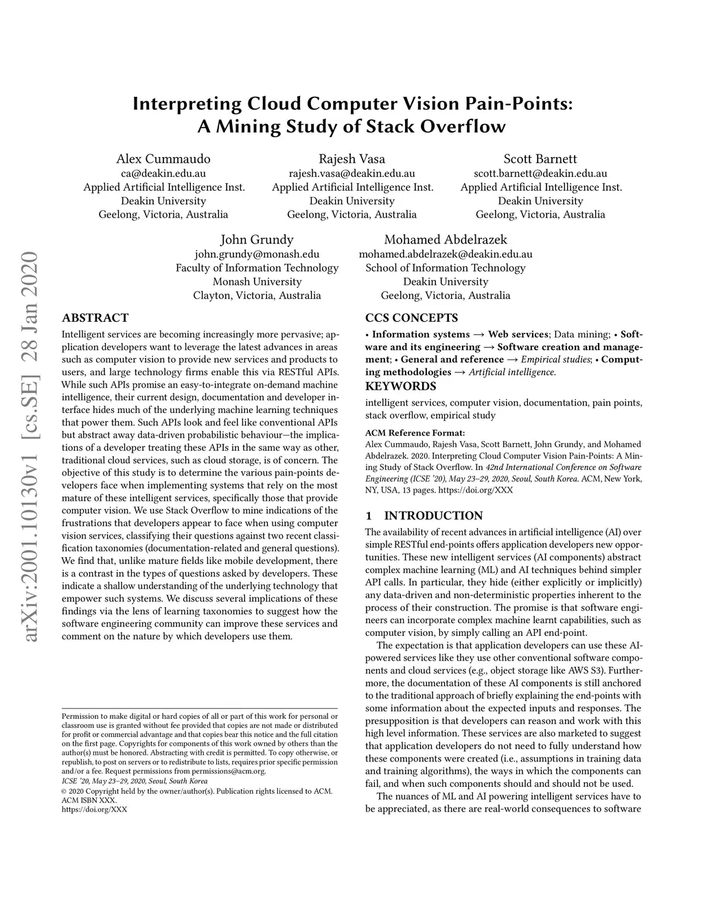 Interpreting Cloud Computer Vision Pain-Points: A Mining Study of Stack