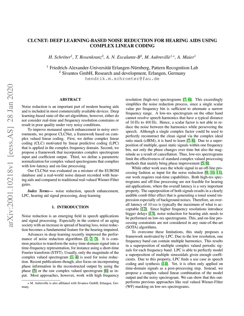 CLCNet: Deep learning-based Noise Reduction for Hearing Aids using
