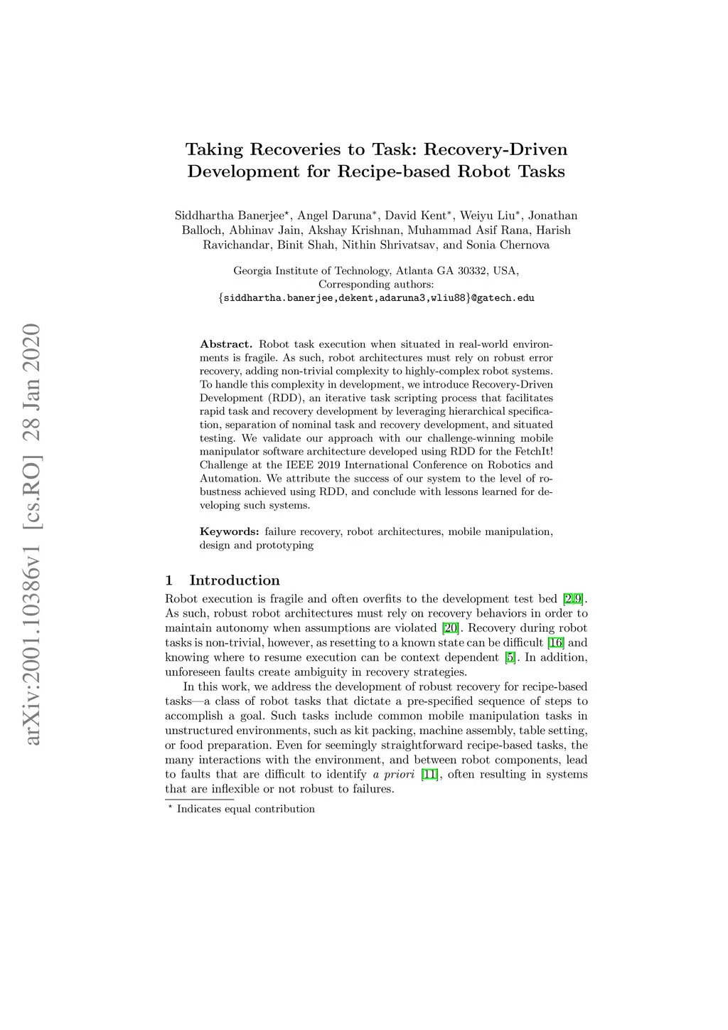 Taking Recoveries to Task: Recovery-Driven Development for Recipe-based