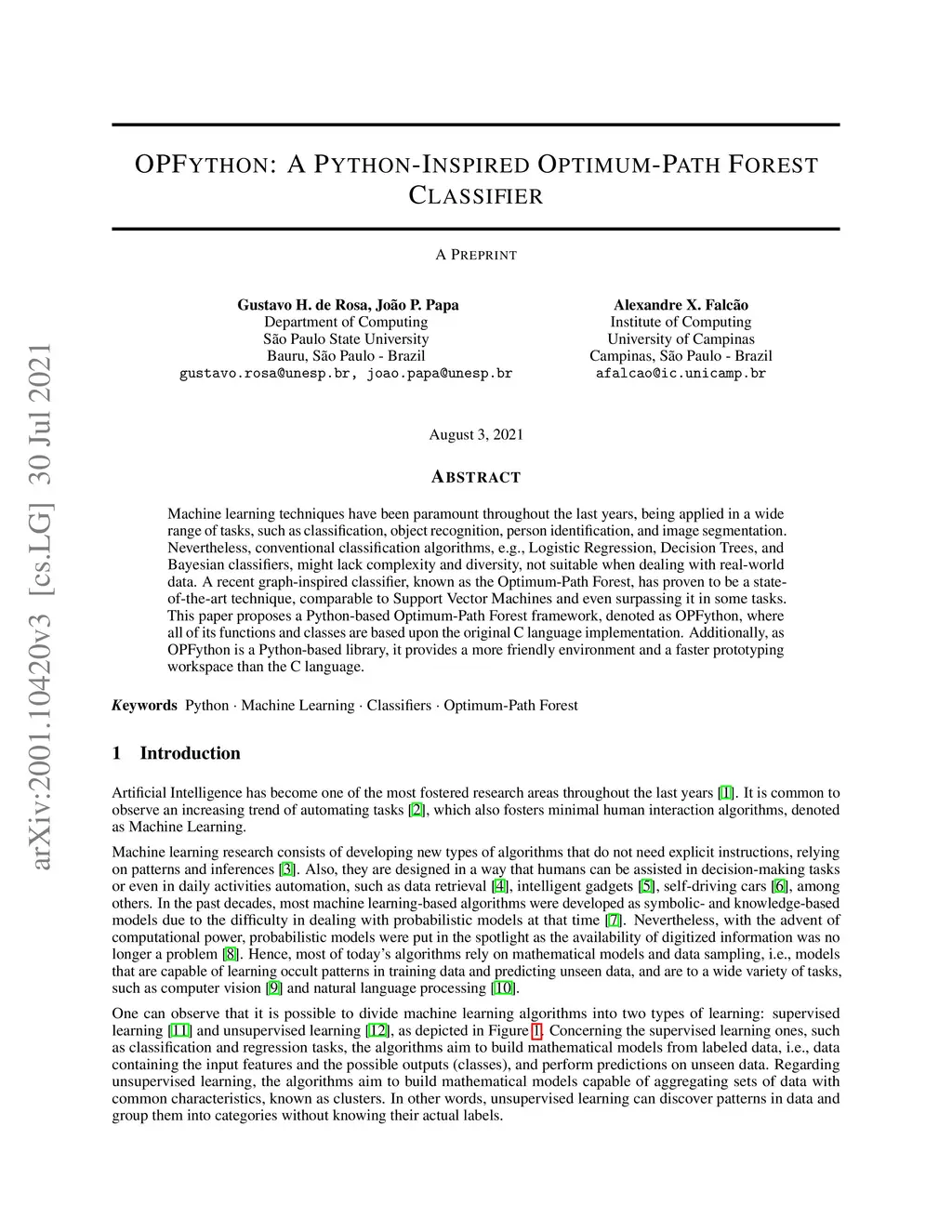 OPFython: A Python-Inspired Optimum-Path Forest Classifier