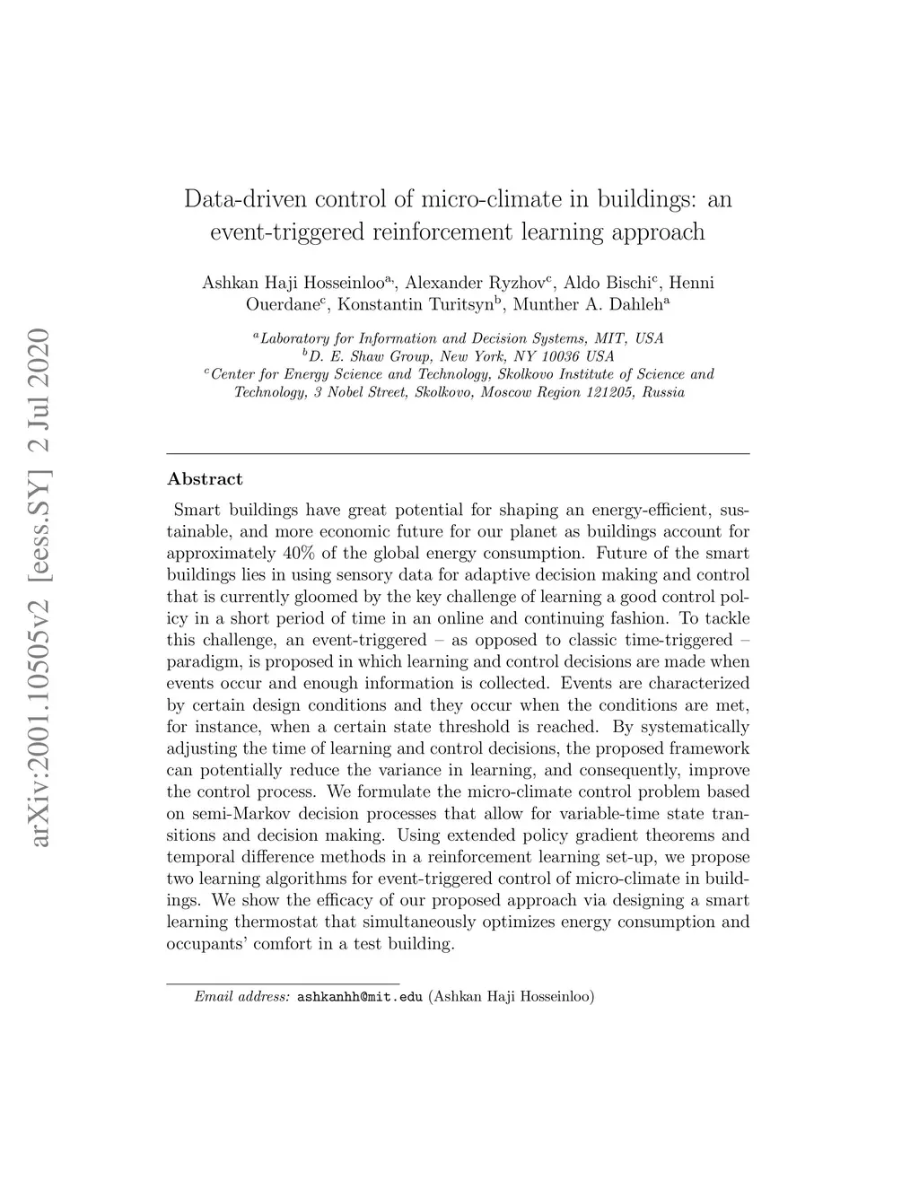 Data-driven control of micro-climate in buildings: an event-triggered