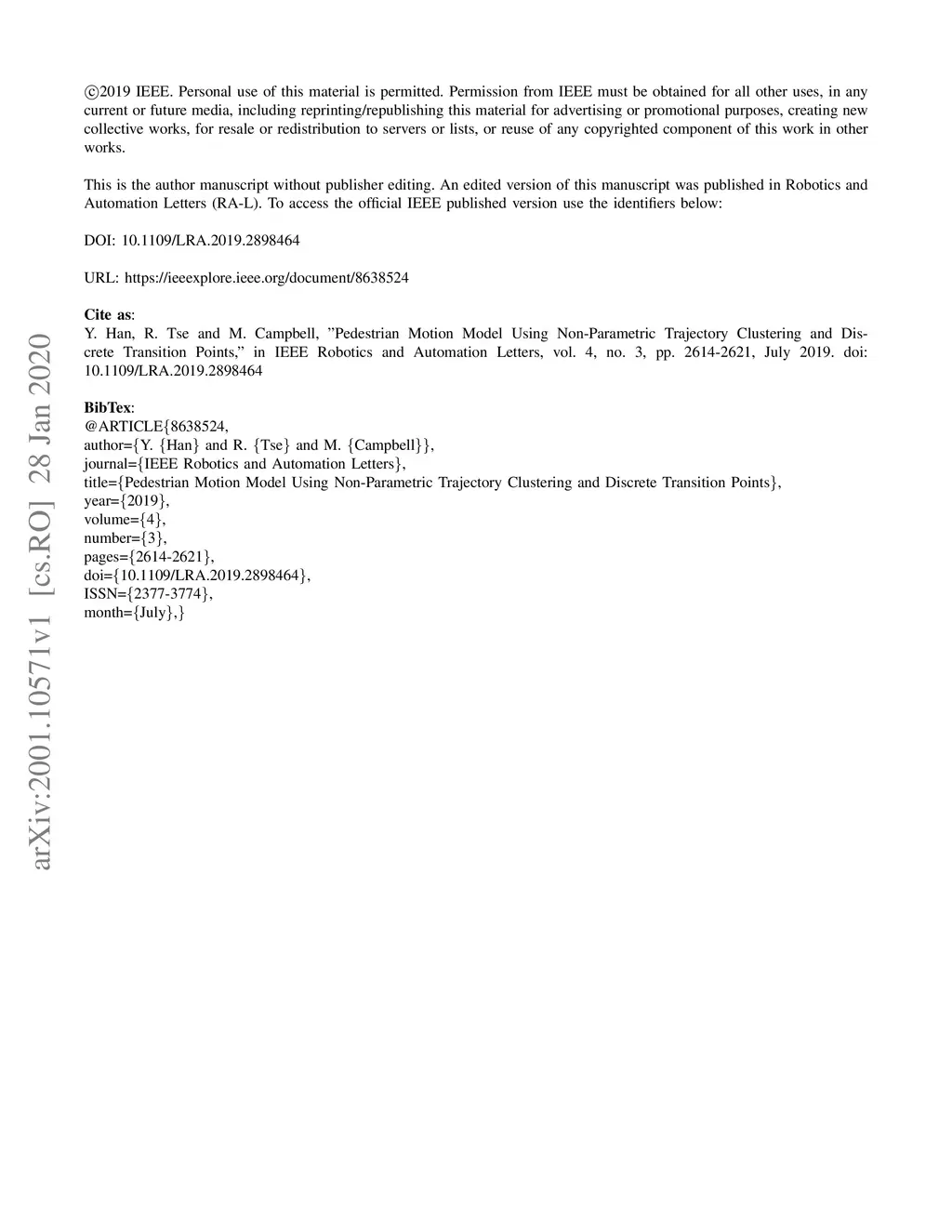 Pedestrian Motion Model Using Non-Parametric Trajectory Clustering and