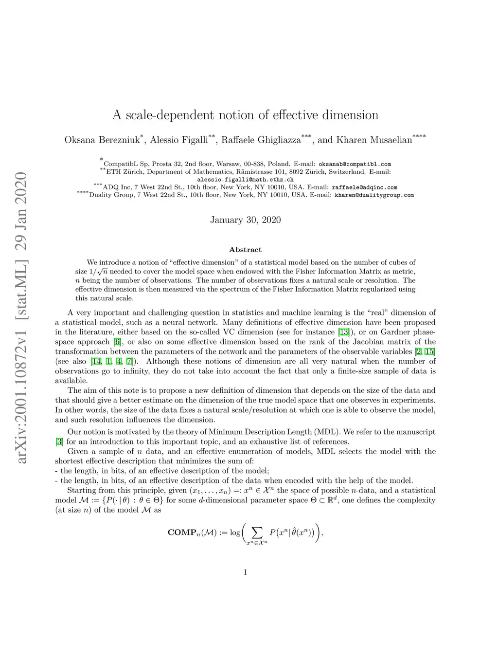 We introduce a notion of "effective dimension" of a statistical model based on the number of cubes of size needed to cover the model space when endowed with the Fisher Information Matrix as metric, being the number of observations. The number of observations fixes a natural scale or resolution. The effective dimension is then measured via the spectrum of the Fisher Information Matrix regularized using this natural scale.