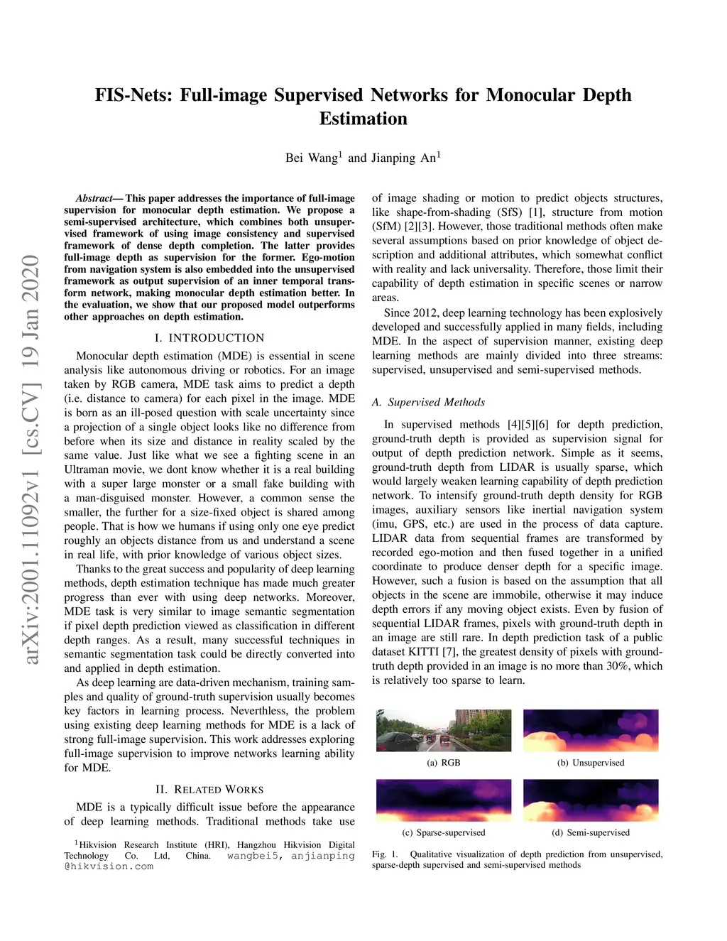 FIS-Nets: Full-image Supervised Networks for Monocular Depth Estimation