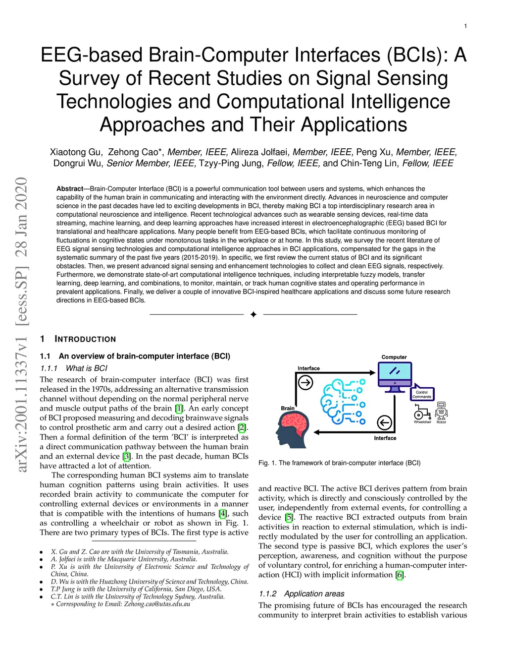 EEG-based Brain-Computer Interfaces (BCIs): A Survey of Recent Studies