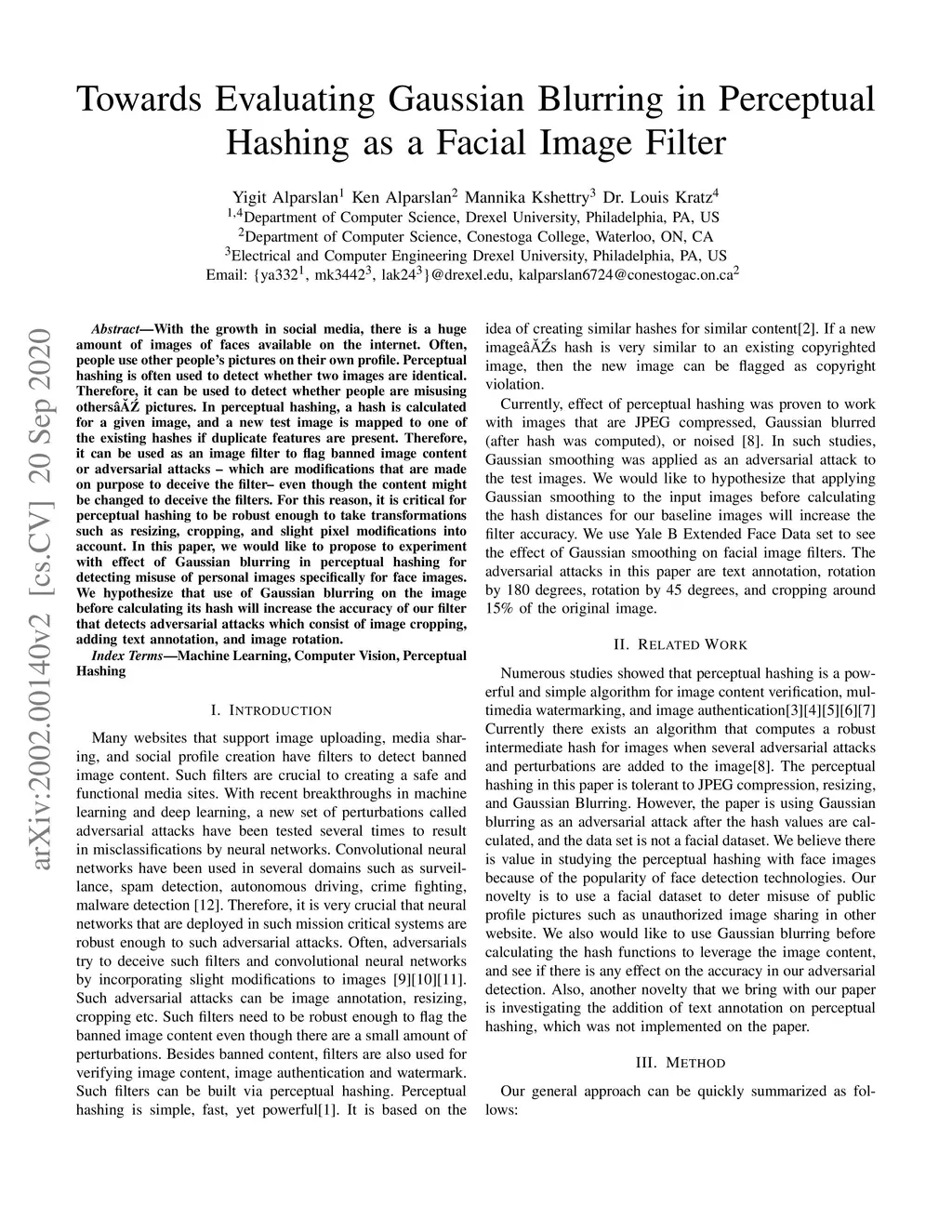 With the growth in social media, there is a huge amount of images of faces available on the internet. Often, people use other people's pictures on their own profile. Perceptual hashing is often used to detect whether two images are identical. Therefore, it can be used to detect whether people are misusing others' pictures. In perceptual hashing, a hash is calculated for a given image, and a new test image is mapped to one of the existing hashes if duplicate features are present. Therefore, it can be used as an image filter to flag banned image content or adversarial attacks --which are modifications that are made on purpose to deceive the filter-- even though the content might be changed to deceive the filters. For this reason, it is critical for perceptual hashing to be robust enough to take transformations such as resizing, cropping, and slight pixel modifications into account. In this paper, we would like to propose to experiment with effect of gaussian blurring in perceptual hashing for detecting misuse of personal images specifically for face images. We hypothesize that use of gaussian blurring on the image before calculating its hash will increase the accuracy of our filter that detects adversarial attacks which consist of image cropping, adding text annotation, and image rotation.