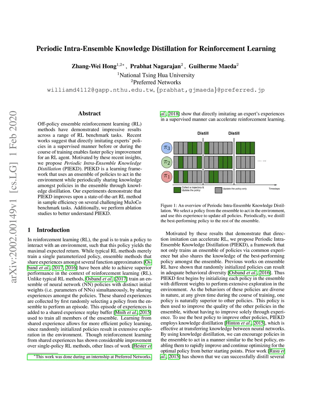 Periodic Intra-Ensemble Knowledge Distillation for Reinforcement