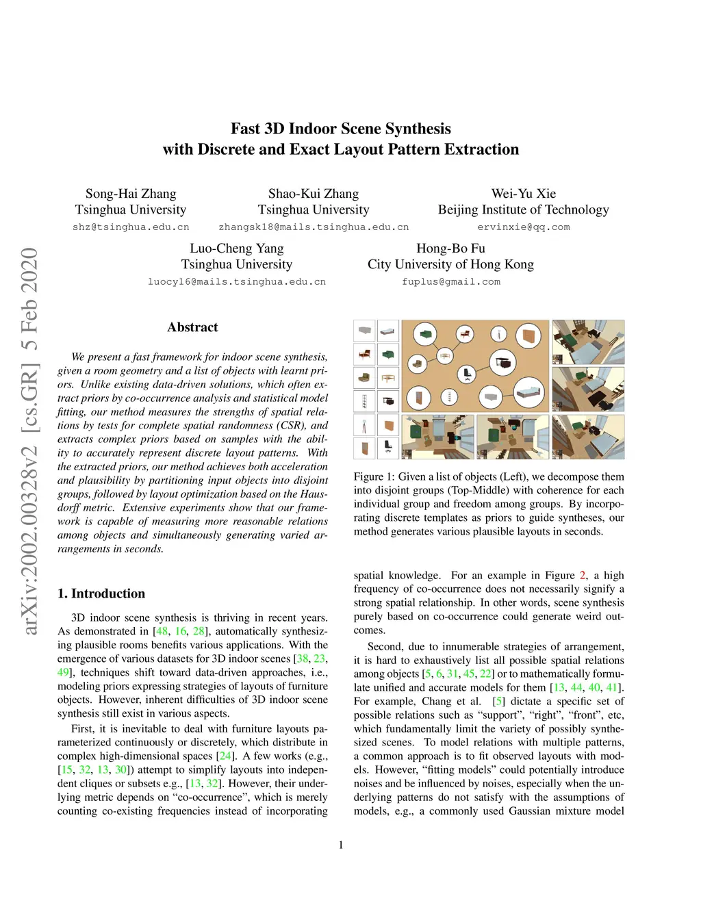 Fast 3D Indoor Scene Synthesis with Discrete and Exact Layout Pattern