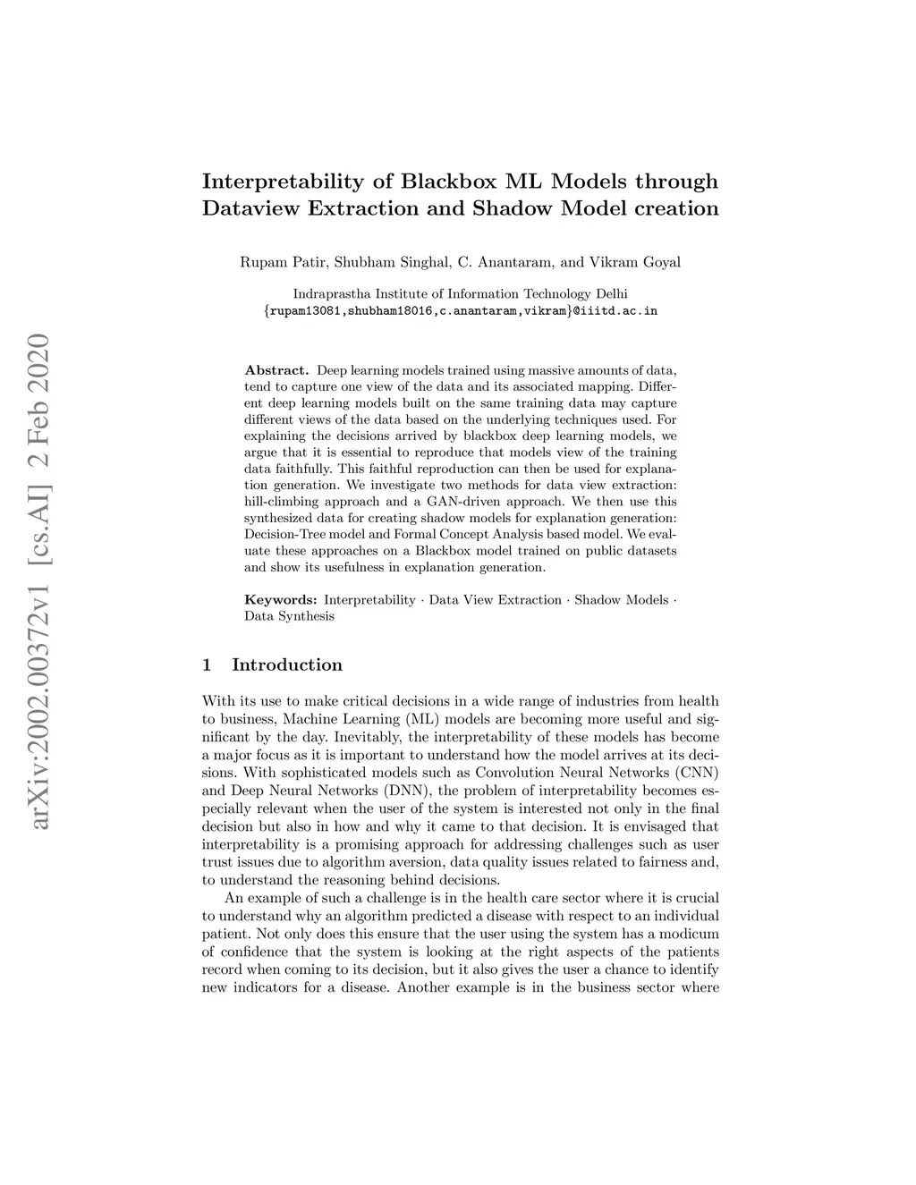 Deep learning models trained using massive amounts of data tend to capture one view of the data and its associated mapping. Different deep learning models built on the same training data may capture different views of the data based on the underlying techniques used. For explaining the decisions arrived by blackbox deep learning models, we argue that it is essential to reproduce that model's view of the training data faithfully. This faithful reproduction can then be used for explanation generation. We investigate two methods for data view extraction: hill-climbing approach and a GAN-driven approach. We then use this synthesized data for creating shadow models for explanation generation: Decision-Tree model and Formal Concept Analysis based model. We evaluate these approaches on a Blackbox model trained on public datasets and show its usefulness in explanation generation.