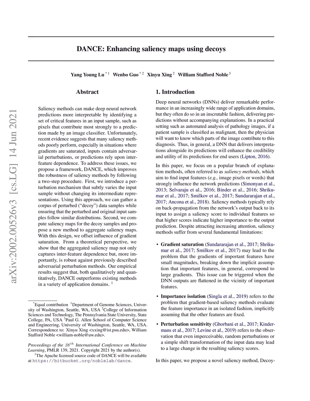 DANCE: Enhancing saliency maps using decoys