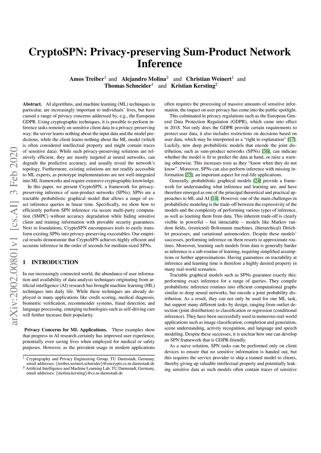 CryptoSPN: Privacy-preserving Sum-Product Network Inference