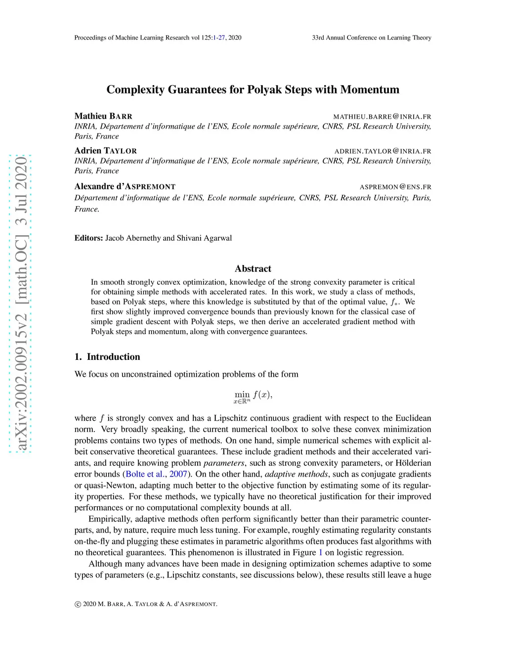 Annual Conference Computational Learning Theory (COLT), 2020