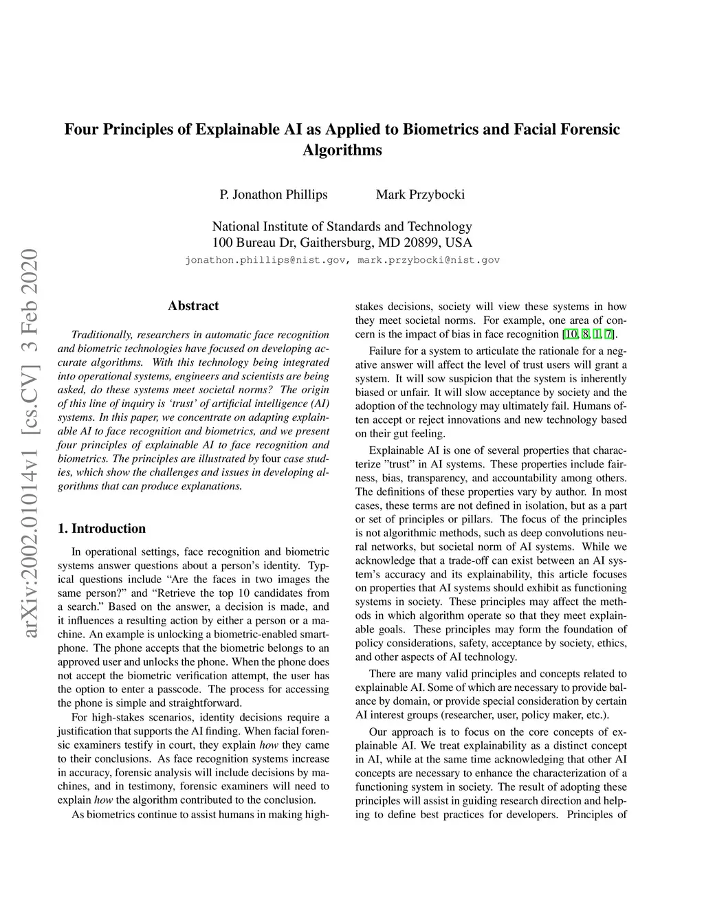 Four Principles of Explainable AI as Applied to Biometrics and Facial