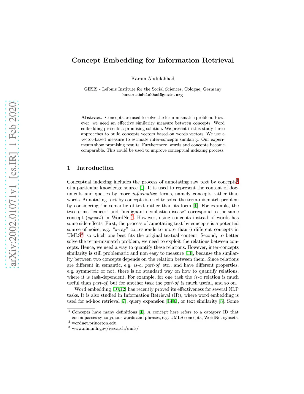 Concept Embedding for Information Retrieval