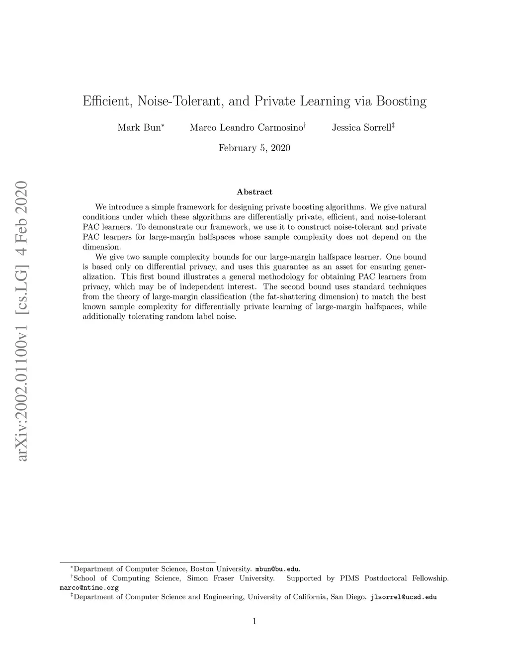 We introduce a simple framework for designing private boosting algorithms. We give natural conditions under which these algorithms are differentially private, efficient, and noise-tolerant PAC learners. To demonstrate our framework, we use it to construct noise-tolerant and private PAC learners for large-margin halfspaces whose sample complexity does not depend on the dimension. We give two sample complexity bounds for our large-margin halfspace learner. One bound is based only on differential privacy, and uses this guarantee as an asset for ensuring generalization. This first bound illustrates a general methodology for obtaining PAC learners from privacy, which may be of independent interest. The second bound uses standard techniques from the theory of large-margin classification (the fat-shattering dimension) to match the best known sample complexity for differentially private learning of large-margin halfspaces, while additionally tolerating random label noise.