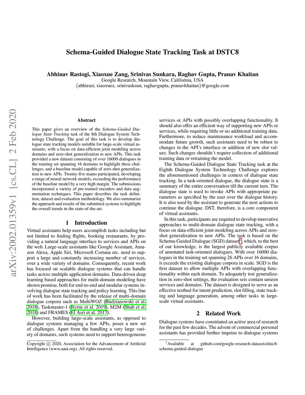 Schema-Guided Dialogue State Tracking Task at DSTC8