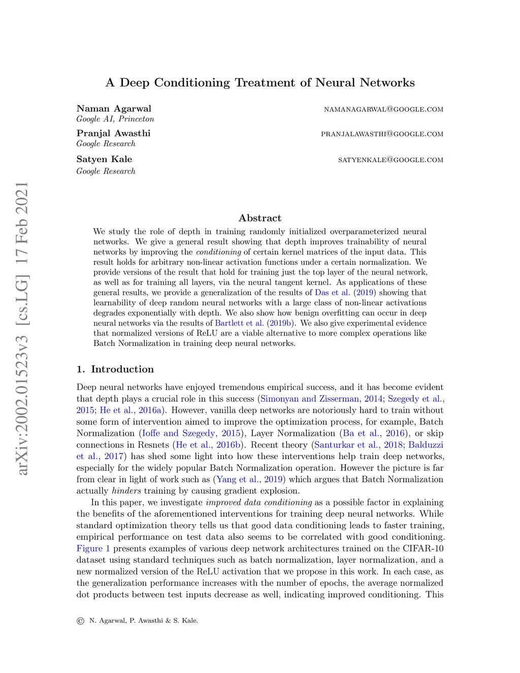 A Deep Conditioning Treatment of Neural Networks
