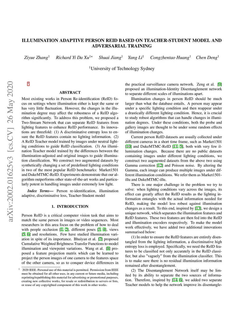 Illumination adaptive person reid based on teacher-student model and