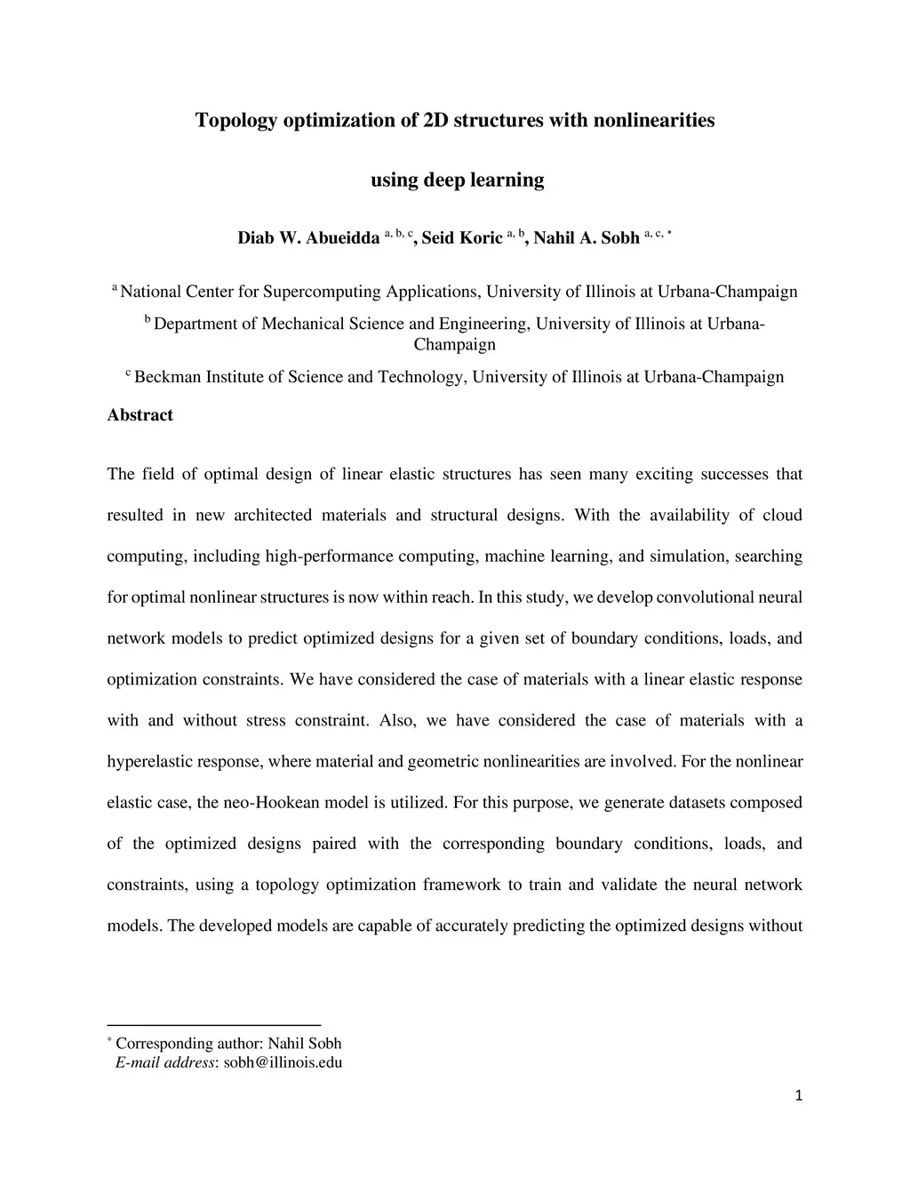 The field of optimal design of linear elastic structures has seen many exciting successes that resulted in new architected materials and structural designs. With the availability of cloud computing, including high-performance computing, machine learning, and simulation, searching for optimal nonlinear structures is now within reach. In this study, we develop convolutional neural network models to predict optimized designs for a given set of boundary conditions, loads, and optimization constraints. We have considered the case of materials with a linear elastic response with and without stress constraint. Also, we have considered the case of materials with a hyperelastic response, where material and geometric nonlinearities are involved. For the nonlinear elastic case, the neo-Hookean model is utilized. For this purpose, we generate datasets composed of the optimized designs paired with the corresponding boundary conditions, loads, and constraints, using a topology optimization framework to train and validate the neural network models. The developed models are capable of accurately predicting the optimized designs without requiring an iterative scheme and with negligible inference computational time. The suggested pipeline can be generalized to other nonlinear mechanics scenarios and design domains.