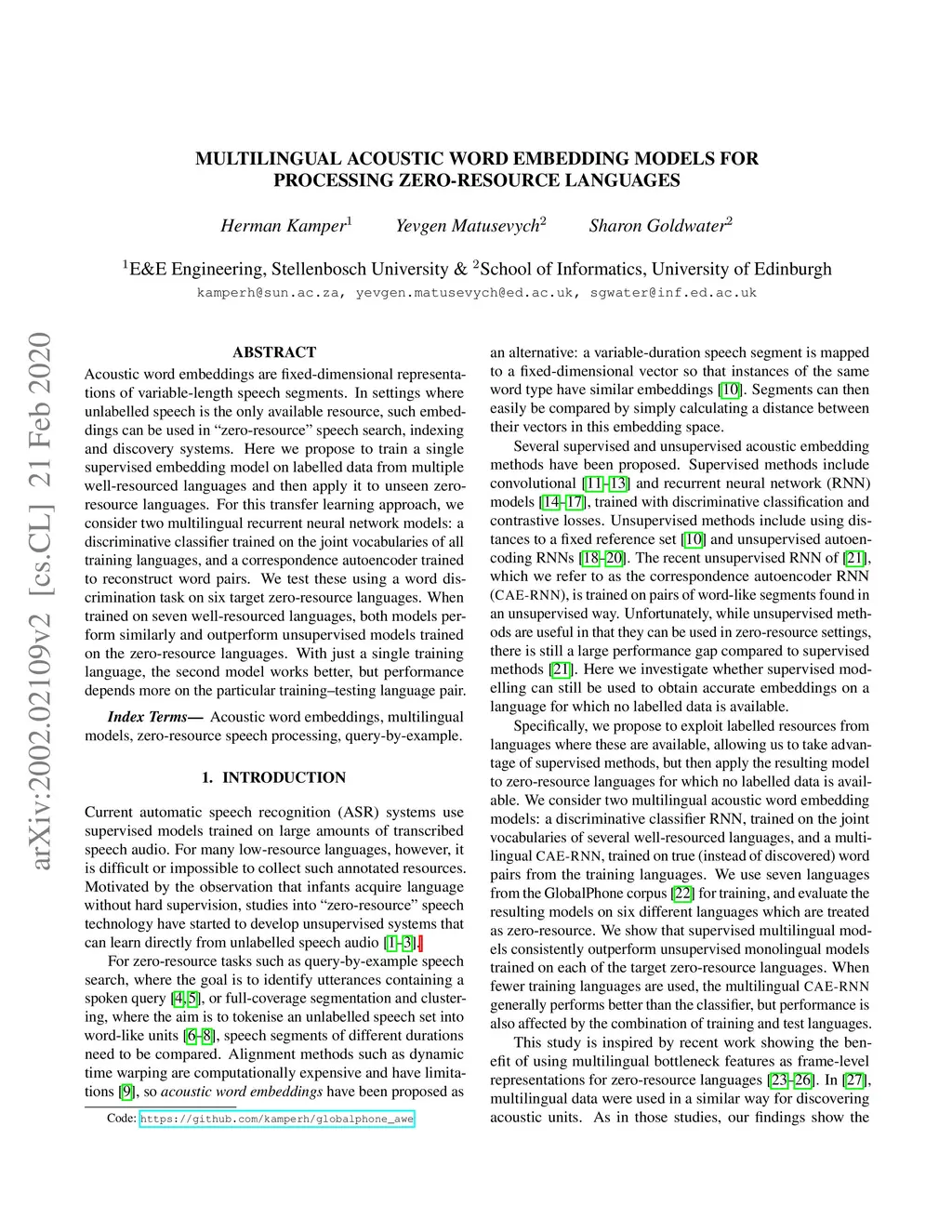 Acoustic word embeddings are fixed-dimensional representations of variable-length speech segments. In settings where unlabelled speech is the only available resource, such embeddings can be used in "zero-resource" speech search, indexing and discovery systems. Here we propose to train a single supervised embedding model on labelled data from multiple well-resourced languages and then apply it to unseen zero-resource languages. For this transfer learning approach, we consider two multilingual recurrent neural network models: a discriminative classifier trained on the joint vocabularies of all training languages, and a correspondence autoencoder trained to reconstruct word pairs. We test these using a word discrimination task on six target zero-resource languages. When trained on seven well-resourced languages, both models perform similarly and outperform unsupervised models trained on the zero-resource languages. With just a single training language, the second model works better, but performance depends more on the particular training--testing language pair.