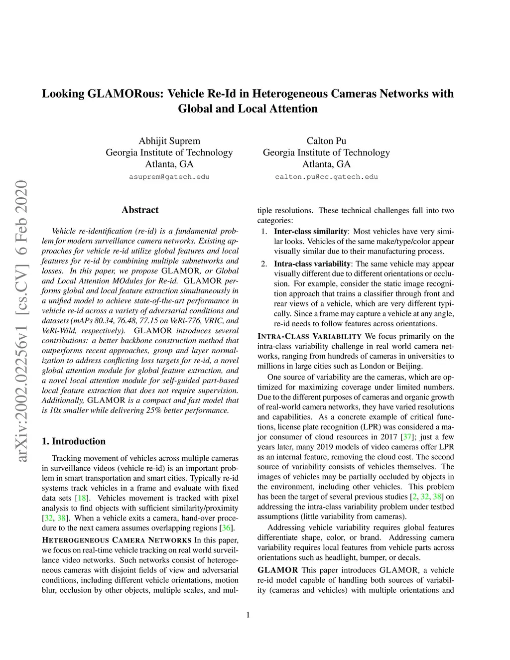 Looking GLAMORous: Vehicle Re-Id in Heterogeneous Cameras Networks with