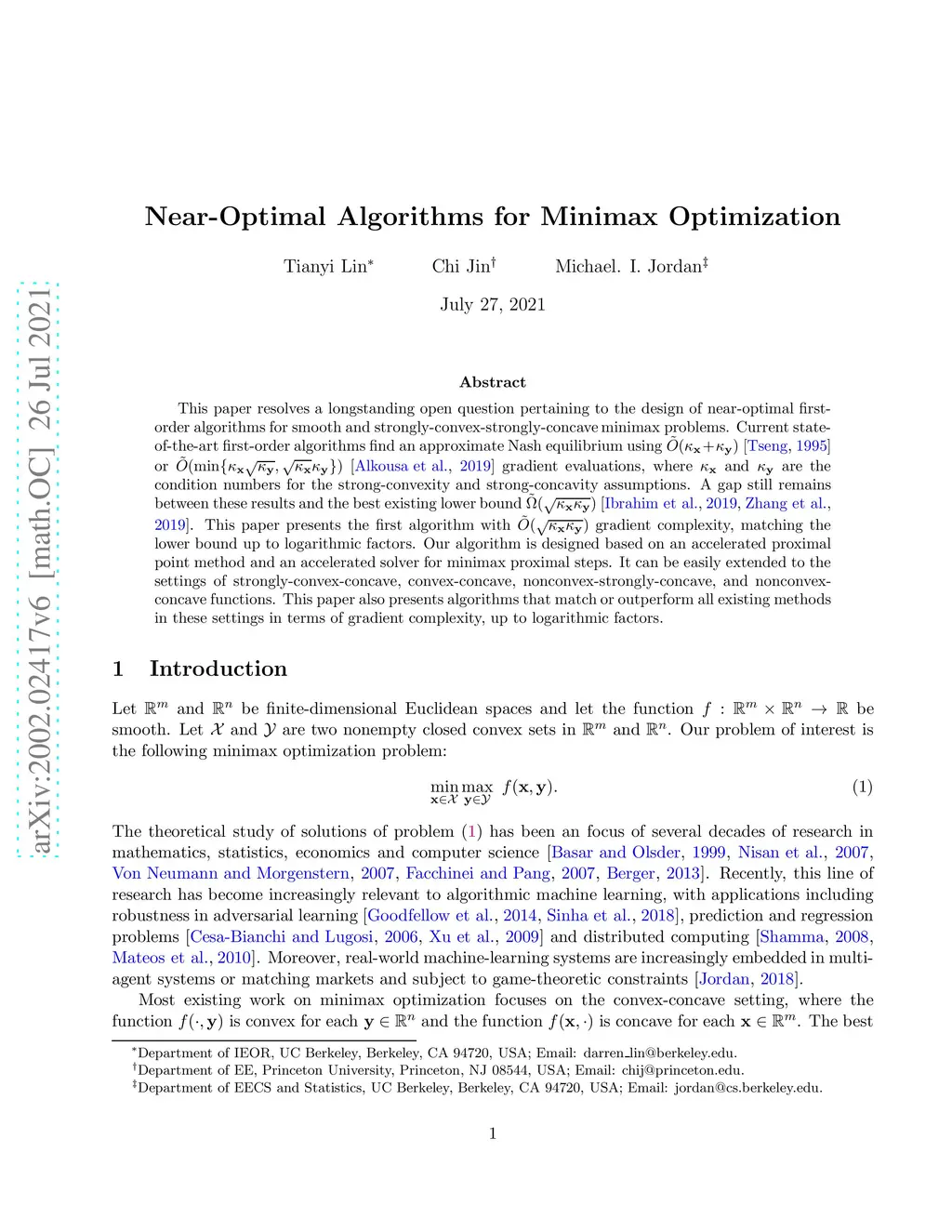 This paper resolves a longstanding open question pertaining to the design of near-optimal first-order algorithms for smooth and strongly-convex-strongly-concave minimax problems. Current state-of-the-art first-order algorithms find an approximate Nash equilibrium using or gradient evaluations, where and are the condition numbers for the strong-convexity and strong-concavity assumptions. A gap still remains between these results and the best existing lower bound . This paper presents the first algorithm with gradient complexity, matching the lower bound up to logarithmic factors. Our algorithm is designed based on an accelerated proximal point method and an accelerated solver for minimax proximal steps. It can be easily extended to the settings of strongly-convex-concave, convex-concave, nonconvex-strongly-concave, and nonconvex-concave functions. This paper also presents algorithms that match or outperform all existing methods in these settings in terms of gradient complexity, up to logarithmic factors.