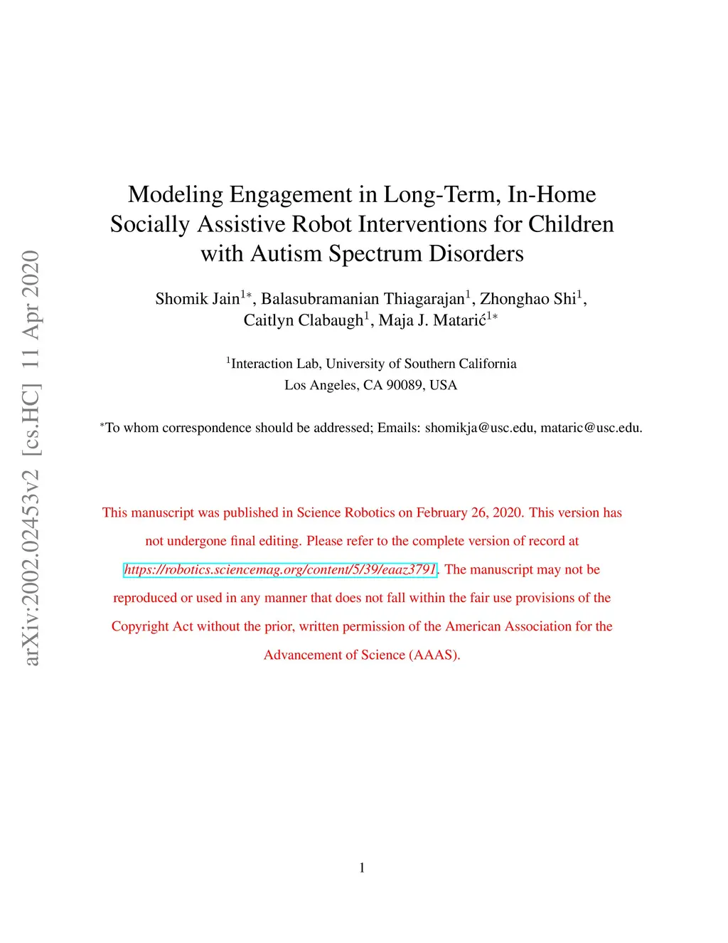 Socially assistive robotics (SAR) has great potential to provide accessible, affordable, and personalized therapeutic interventions for children with autism spectrum disorders (ASD). However, human-robot interaction (HRI) methods are still limited in their ability to autonomously recognize and respond to behavioral cues, especially in atypical users and everyday settings. This work applies supervised machine learning algorithms to model user engagement in the context of long-term, in-home SAR interventions for children with ASD. Specifically, we present two types of engagement models for each user: (i) generalized models trained on data from different users; and (ii) individualized models trained on an early subset of the user's data. The models achieved approximately 90% accuracy (AUROC) for post hoc binary classification of engagement, despite the high variance in data observed across users, sessions, and engagement states. Moreover, temporal patterns in model predictions could be used to reliably initiate re-engagement actions at appropriate times. These results validate the feasibility and challenges of recognition and response to user disengagement in long-term, real-world HRI settings. The contributions of this work also inform the design of engaging and personalized HRI, especially for the ASD community.