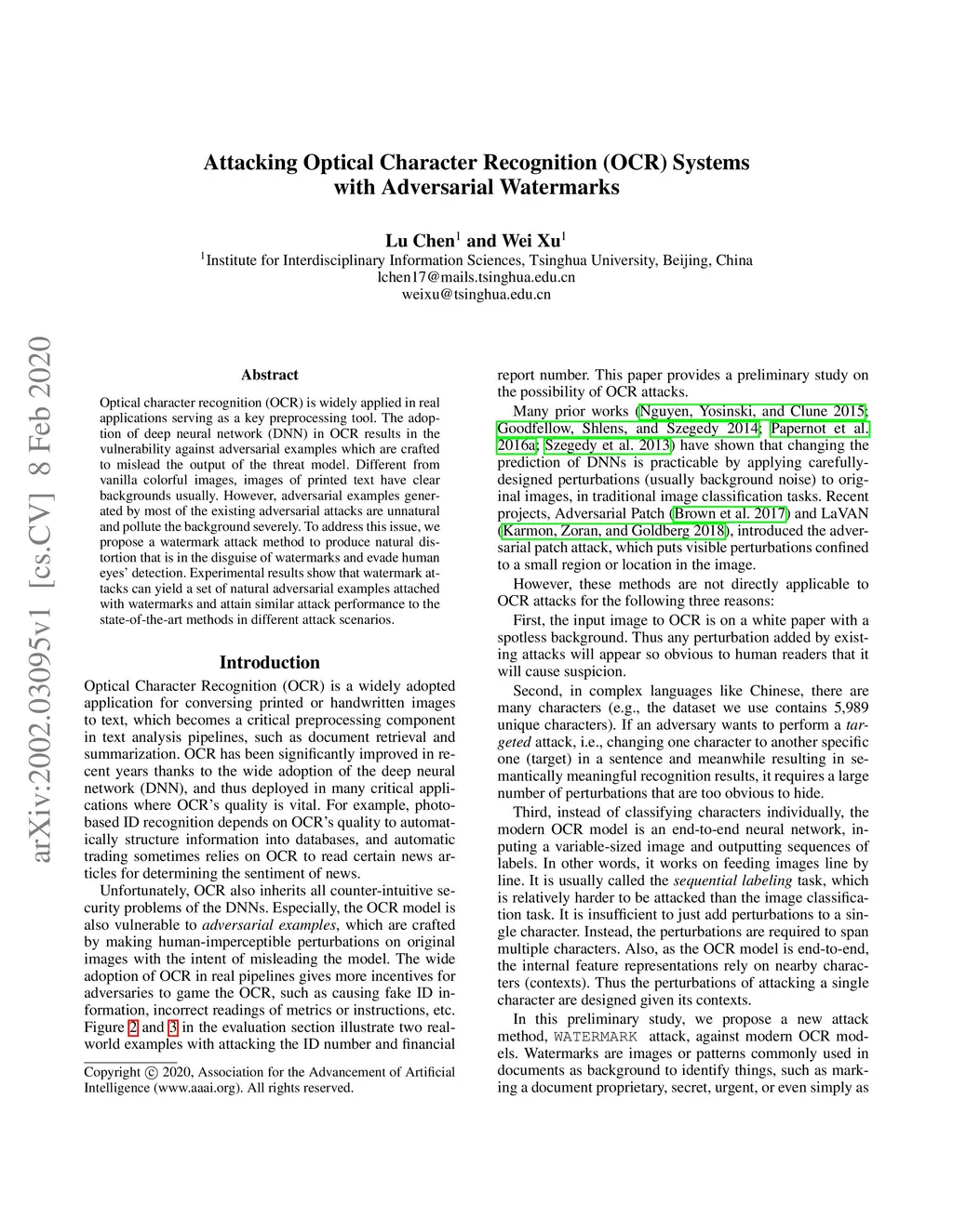 Attacking Optical Character Recognition (OCR) Systems with Adversarial