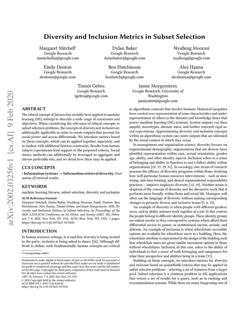 AAAI/ACM Conference on AI, Ethics, and Society (AIES), 2020