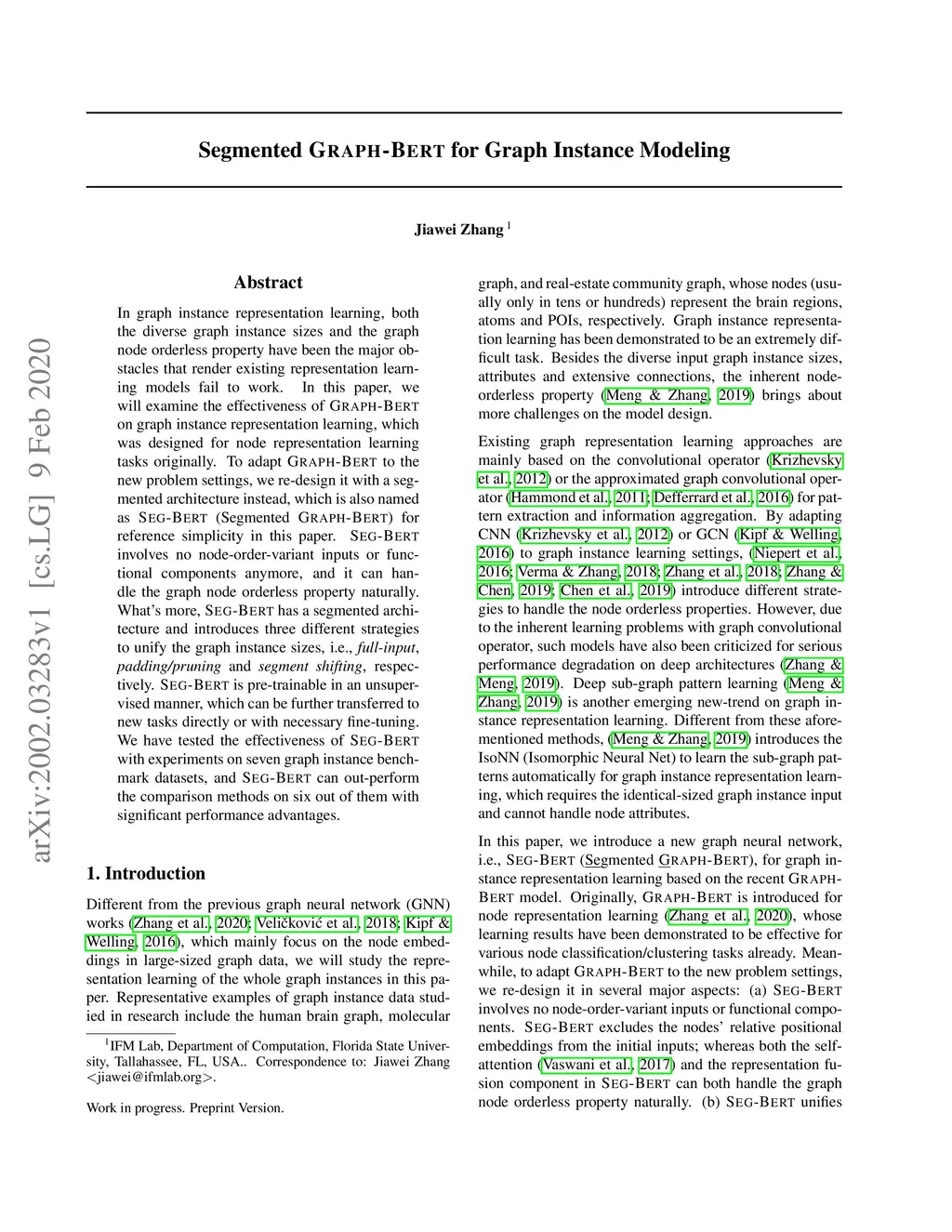 Segmented Graph-Bert for Graph Instance Modeling