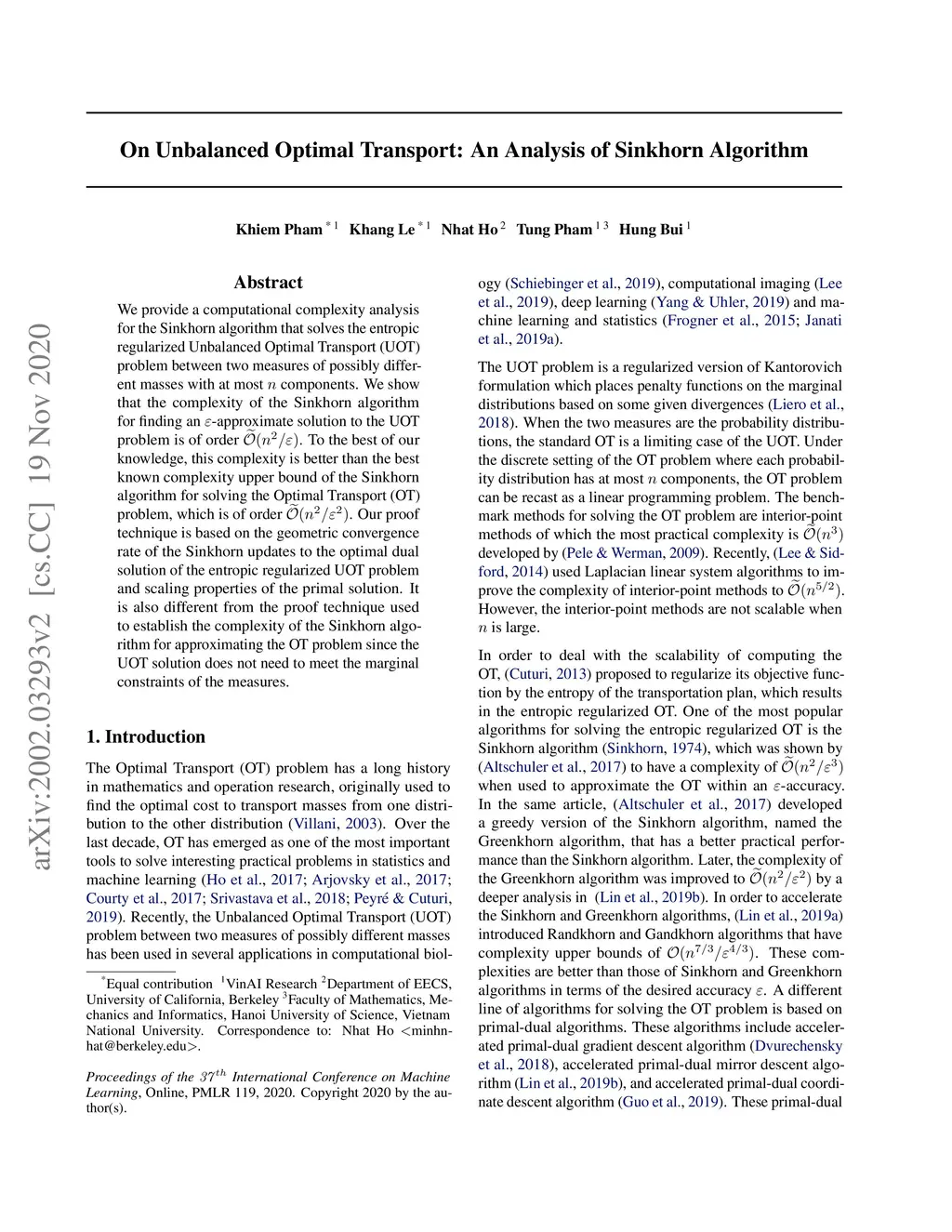 On Unbalanced Optimal Transport: An Analysis of Sinkhorn Algorithm