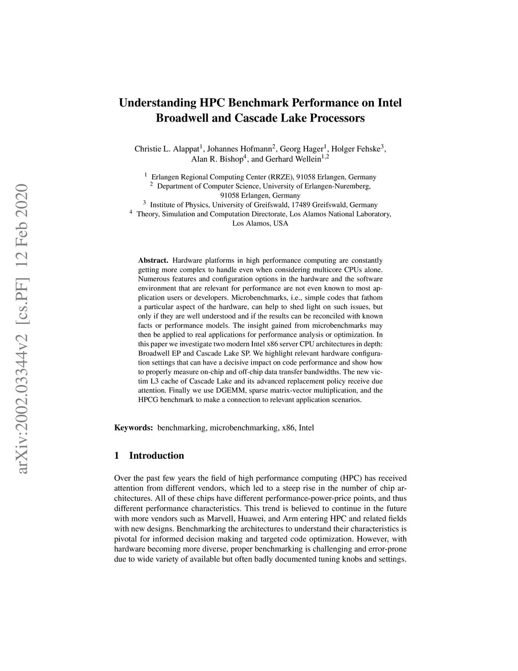 Understanding HPC Benchmark Performance on Intel Broadwell and Cascade