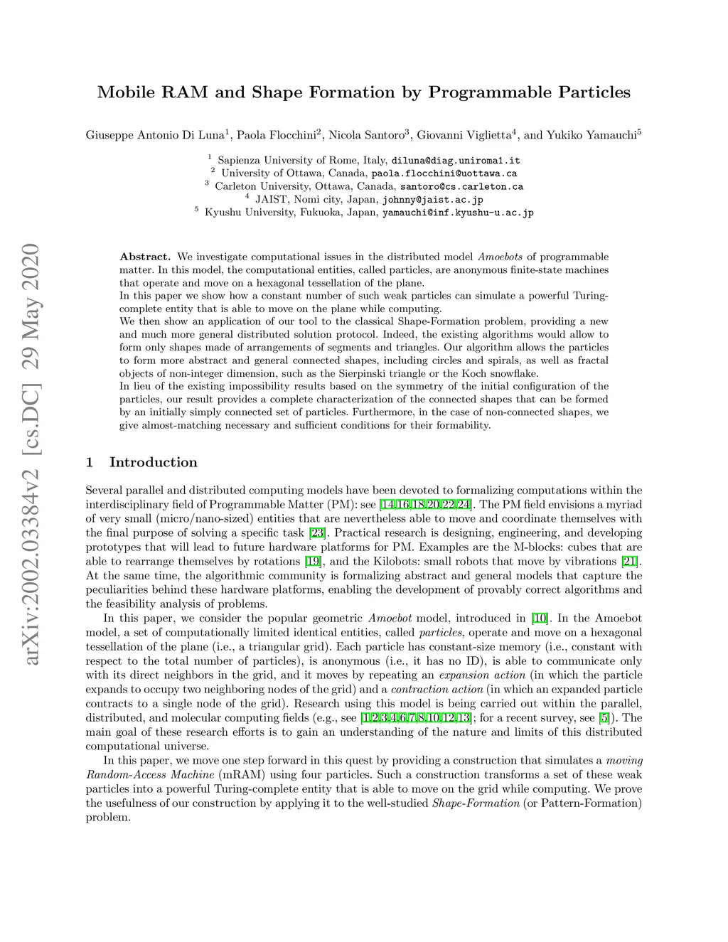 We investigate computational issues in the distributed model Amoebots of programmable matter. In this model, the computational entities, called particles, are anonymous finite-state machines that operate and move on an hexagonal tasselation of the plane. In this paper we show how a constant number of such weak particles can simulate a powerful Turing-complete entity that is able to move on the plane while computing. We then show an application of our tool to the classical Shape-Formation problem, providing a new and much more general distributed solution protocol. Indeed, the existing algorithms would allow to form only shapes made of arrangements of segments and triangles. Our algorithm allows the particles to form more abstract and general connected shapes, including circles and spirals, as well as fractal objects of non-integer dimension, such as the Sierpinski triangle or the Koch snowflake. In lieu of the existing limitation on the formability of a shape depending on the symmetry of the initial configuration of the particles, our result provides a complete characterization of the connected shapes that can be formed by an initially simply connected set of particles. Furthermore, in the case of non-connected shapes, we give almost-matching necessary and sufficient conditions for their formability.