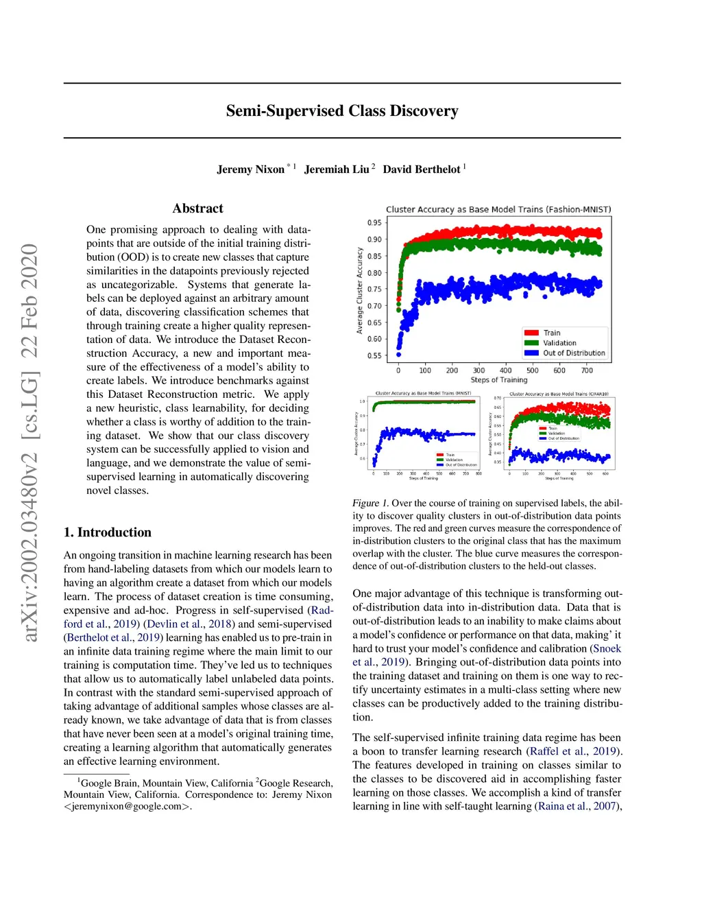 One promising approach to dealing with datapoints that are outside of the initial training distribution (OOD) is to create new classes that capture similarities in the datapoints previously rejected as uncategorizable. Systems that generate labels can be deployed against an arbitrary amount of data, discovering classification schemes that through training create a higher quality representation of data. We introduce the Dataset Reconstruction Accuracy, a new and important measure of the effectiveness of a model's ability to create labels. We introduce benchmarks against this Dataset Reconstruction metric. We apply a new heuristic, class learnability, for deciding whether a class is worthy of addition to the training dataset. We show that our class discovery system can be successfully applied to vision and language, and we demonstrate the value of semi-supervised learning in automatically discovering novel classes.