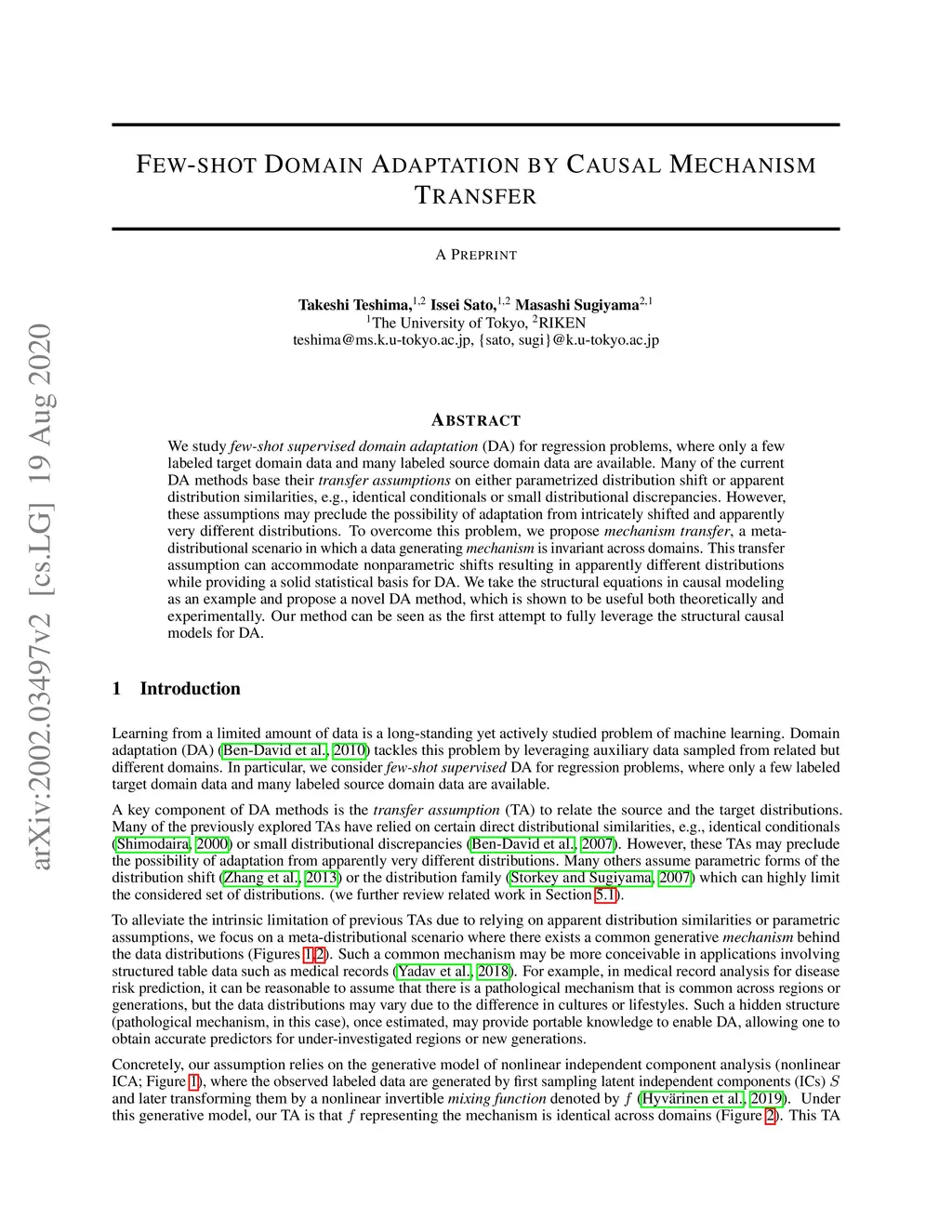 Few-shot Domain Adaptation by Causal Mechanism Transfer