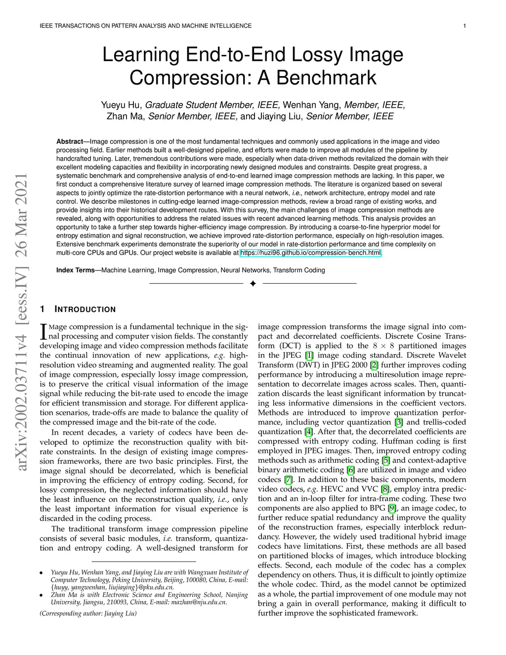 Learning End-to-End Lossy Image Compression: A Benchmark