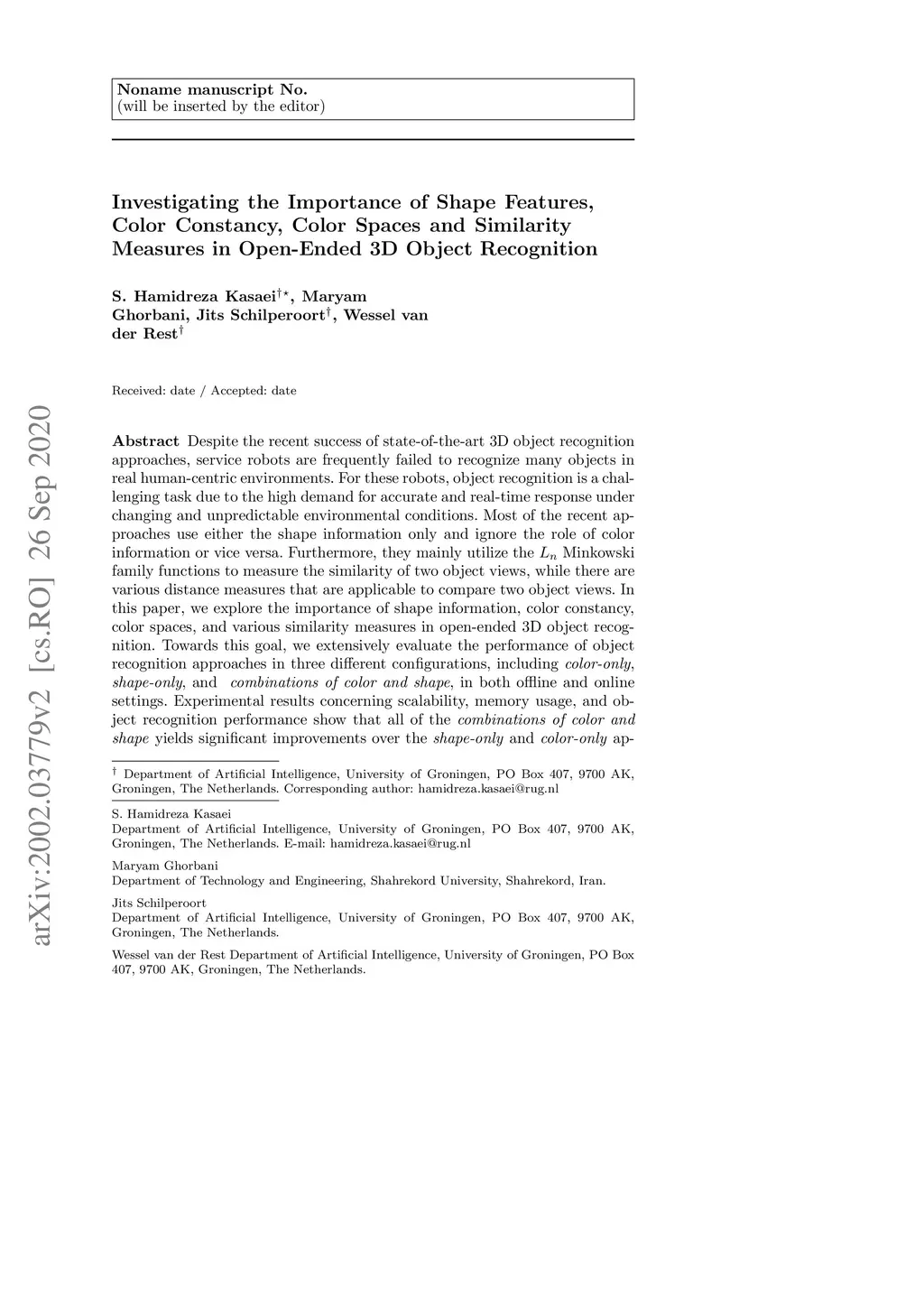 Despite the recent success of state-of-the-art 3D object recognition approaches, service robots are frequently failed to recognize many objects in real human-centric environments. For these robots, object recognition is a challenging task due to the high demand for accurate and real-time response under changing and unpredictable environmental conditions. Most of the recent approaches use either the shape information only and ignore the role of color information or vice versa. Furthermore, they mainly utilize the Minkowski family functions to measure the similarity of two object views, while there are various distance measures that are applicable to compare two object views. In this paper, we explore the importance of shape information, color constancy, color spaces, and various similarity measures in open-ended 3D object recognition. Towards this goal, we extensively evaluate the performance of object recognition approaches in three different configurations, including \textit{color-only}, \textit{shape-only}, and \textit{ combinations of color and shape}, in both offline and online settings. Experimental results concerning scalability, memory usage, and object recognition performance show that all of the \textit{combinations of color and shape} yields significant improvements over the \textit{shape-only} and \textit{color-only} approaches. The underlying reason is that color information is an important feature to distinguish objects that have very similar geometric properties with different colors and vice versa. Moreover, by combining color and shape information, we demonstrate that the robot can learn new object categories from very few training examples in a real-world setting.