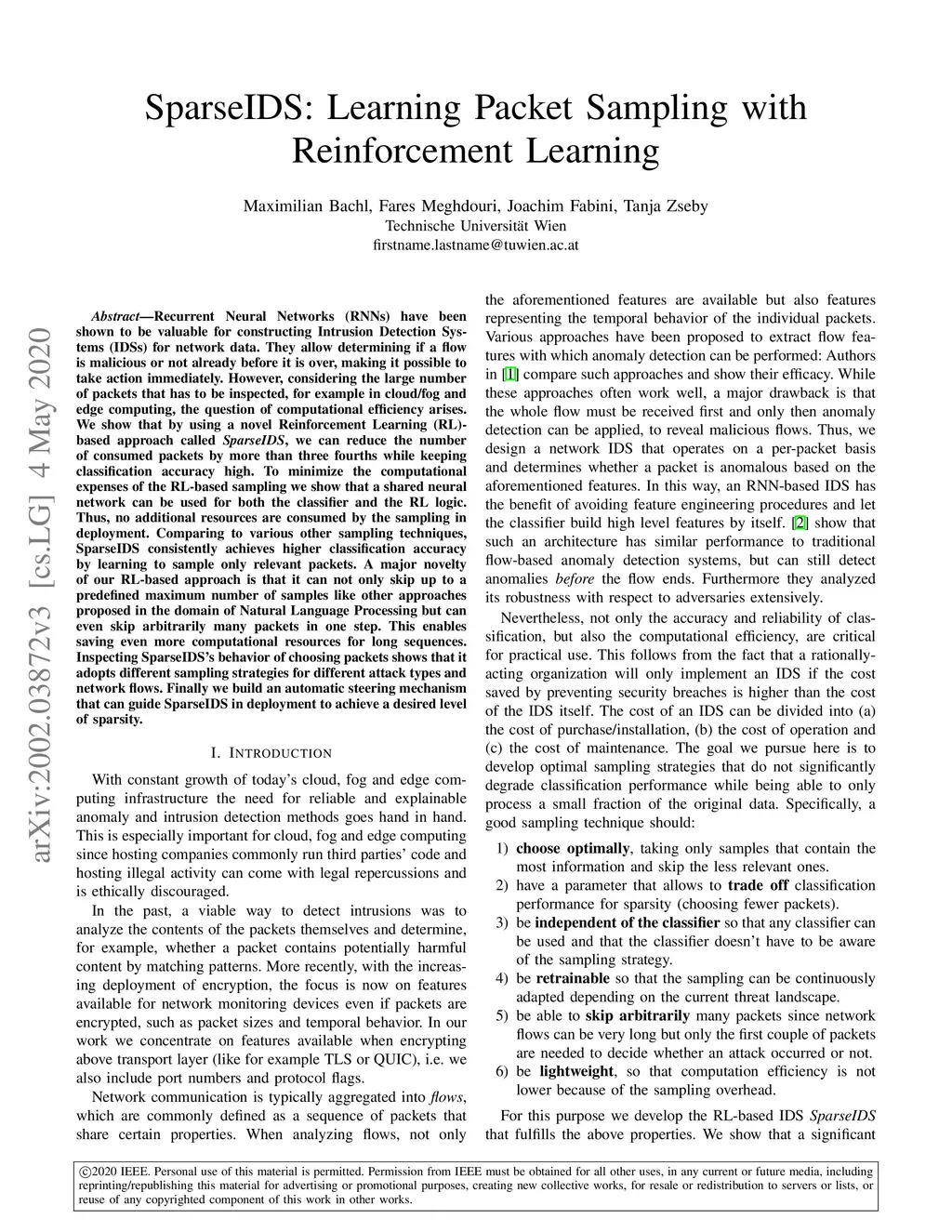 SparseIDS: Learning Packet Sampling with Reinforcement Learning