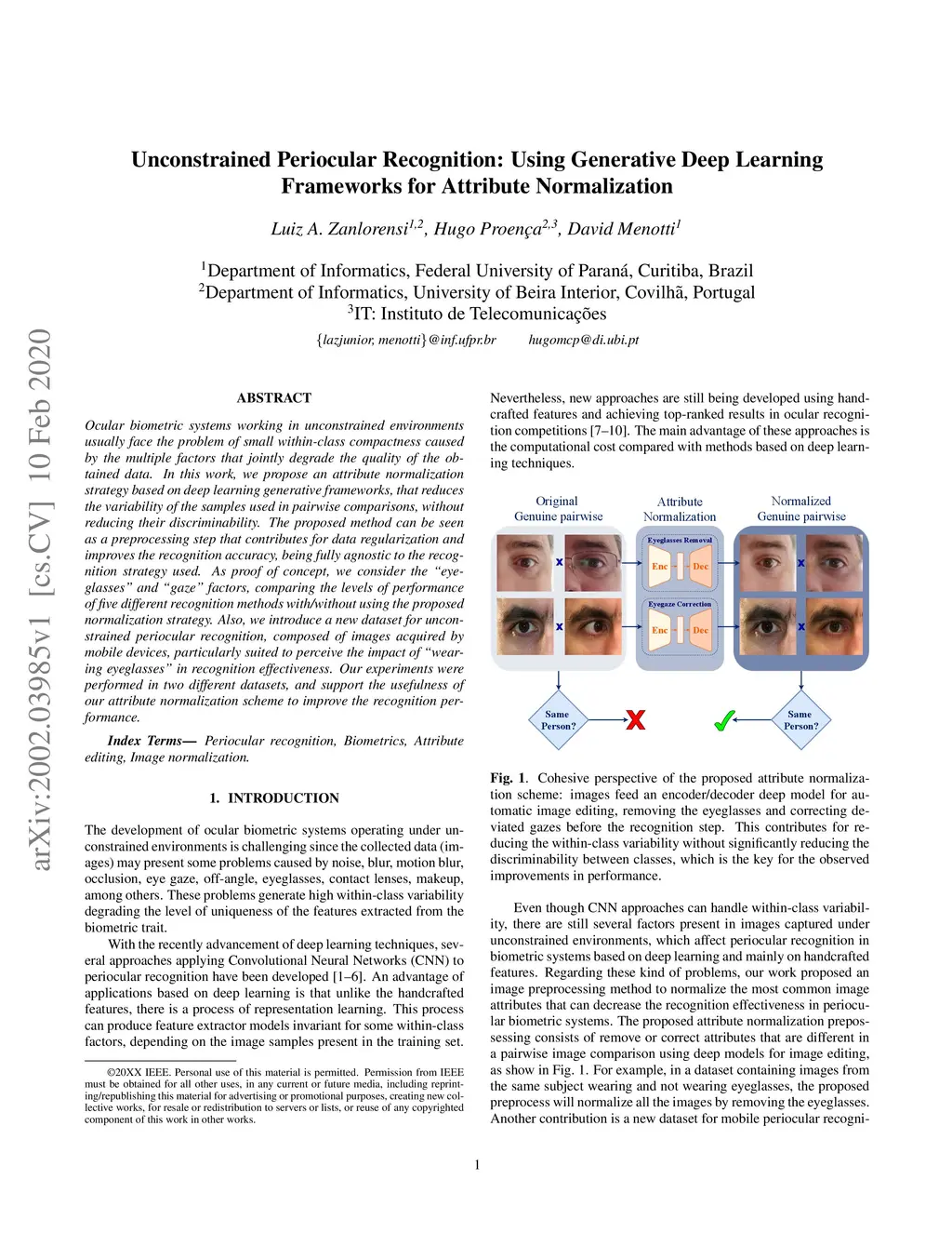 Ocular biometric systems working in unconstrained environments usually face the problem of small within-class compactness caused by the multiple factors that jointly degrade the quality of the obtained data. In this work, we propose an attribute normalization strategy based on deep learning generative frameworks, that reduces the variability of the samples used in pairwise comparisons, without reducing their discriminability. The proposed method can be seen as a preprocessing step that contributes for data regularization and improves the recognition accuracy, being fully agnostic to the recognition strategy used. As proof of concept, we consider the "eyeglasses" and "gaze" factors, comparing the levels of performance of five different recognition methods with/without using the proposed normalization strategy. Also, we introduce a new dataset for unconstrained periocular recognition, composed of images acquired by mobile devices, particularly suited to perceive the impact of "wearing eyeglasses" in recognition effectiveness. Our experiments were performed in two different datasets, and support the usefulness of our attribute normalization scheme to improve the recognition performance.