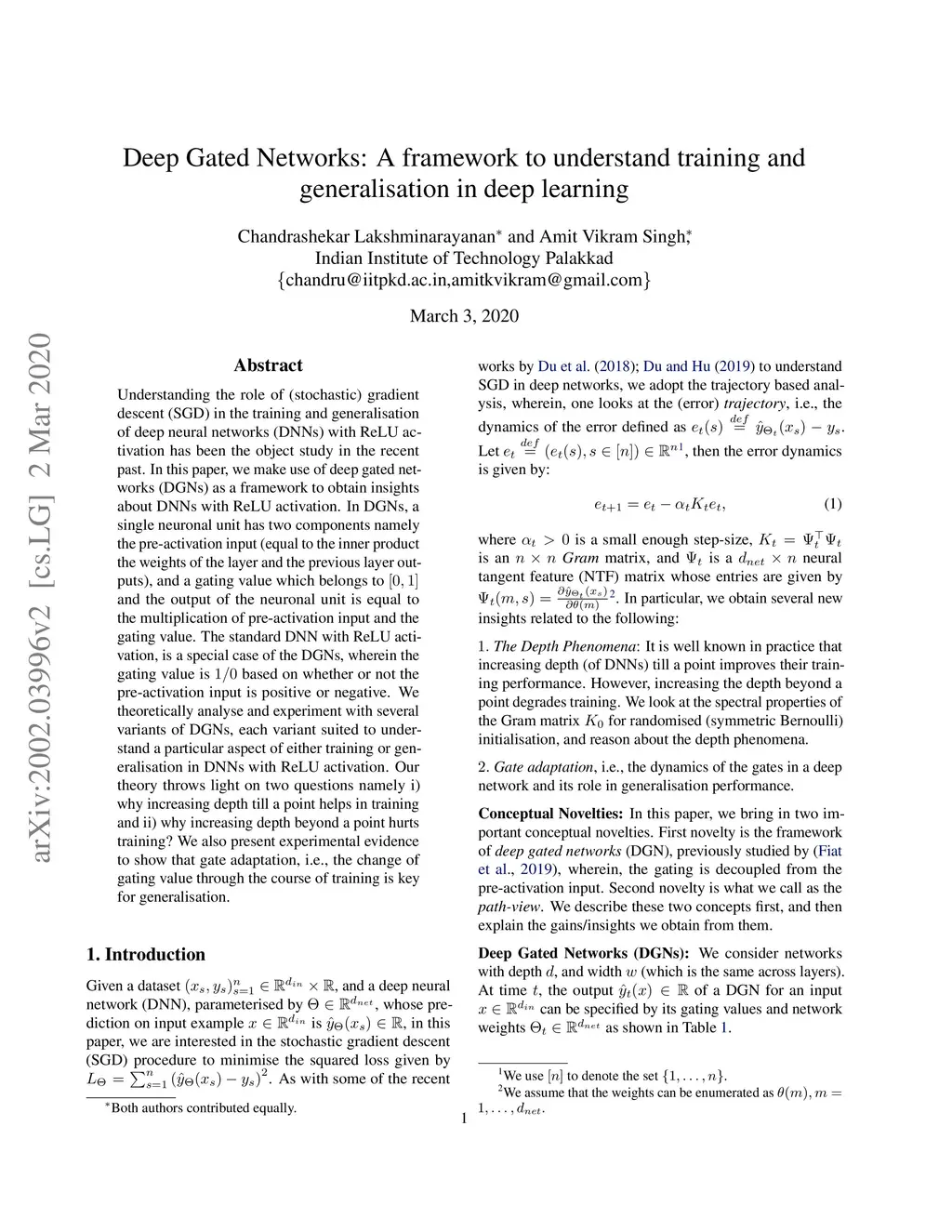Understanding the role of (stochastic) gradient descent (SGD) in the training and generalisation of deep neural networks (DNNs) with ReLU activation has been the object study in the recent past. In this paper, we make use of deep gated networks (DGNs) as a framework to obtain insights about DNNs with ReLU activation. In DGNs, a single neuronal unit has two components namely the pre-activation input (equal to the inner product the weights of the layer and the previous layer outputs), and a gating value which belongs to and the output of the neuronal unit is equal to the multiplication of pre-activation input and the gating value. The standard DNN with ReLU activation, is a special case of the DGNs, wherein the gating value is based on whether or not the pre-activation input is positive or negative. We theoretically analyse and experiment with several variants of DGNs, each variant suited to understand a particular aspect of either training or generalisation in DNNs with ReLU activation. Our theory throws light on two questions namely i) why increasing depth till a point helps in training and ii) why increasing depth beyond a point hurts training? We also present experimental evidence to show that gate adaptation, i.e., the change of gating value through the course of training is key for generalisation.