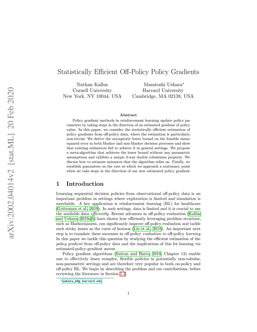 Statistically Efficient Off-Policy Policy Gradients