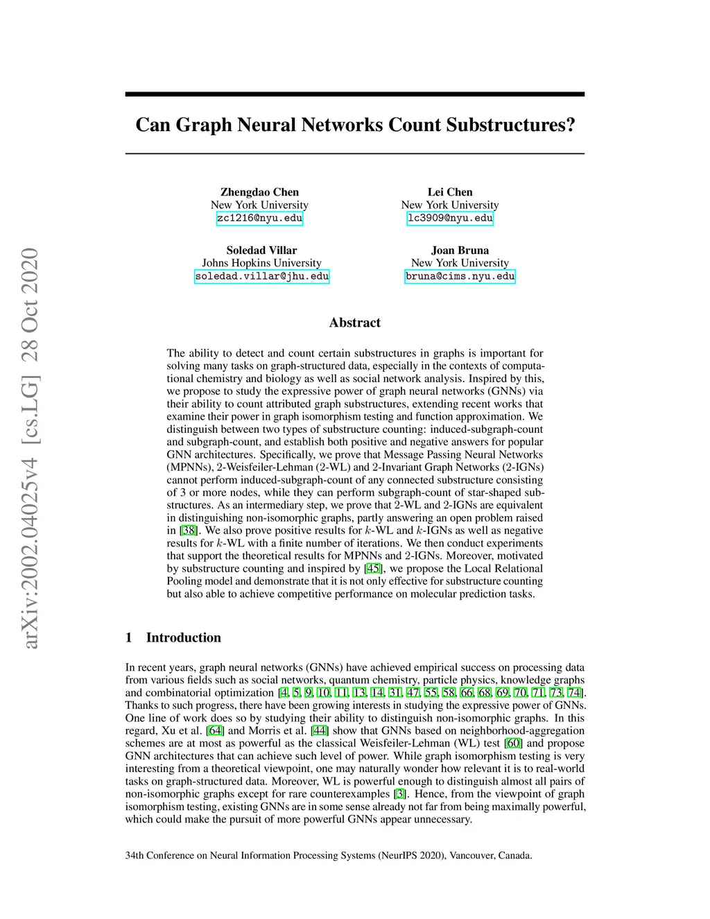 The ability to detect and count certain substructures in graphs is important for solving many tasks on graph-structured data, especially in the contexts of computational chemistry and biology as well as social network analysis. Inspired by this, we propose to study the expressive power of graph neural networks (GNNs) via their ability to count attributed graph substructures, extending recent works that examine their power in graph isomorphism testing and function approximation. We distinguish between two types of substructure counting: induced-subgraph-count and subgraph-count, and establish both positive and negative answers for popular GNN architectures. Specifically, we prove that Message Passing Neural Networks (MPNNs), 2-Weisfeiler-Lehman (2-WL) and 2-Invariant Graph Networks (2-IGNs) cannot perform induced-subgraph-count of substructures consisting of 3 or more nodes, while they can perform subgraph-count of star-shaped substructures. As an intermediary step, we prove that 2-WL and 2-IGNs are equivalent in distinguishing non-isomorphic graphs, partly answering an open problem raised in Maron et al. (2019). We also prove positive results for k-WL and k-IGNs as well as negative results for k-WL with a finite number of iterations. We then conduct experiments that support the theoretical results for MPNNs and 2-IGNs. Moreover, motivated by substructure counting and inspired by Murphy et al. (2019), we propose the Local Relational Pooling model and demonstrate that it is not only effective for substructure counting but also able to achieve competitive performance on molecular prediction tasks.