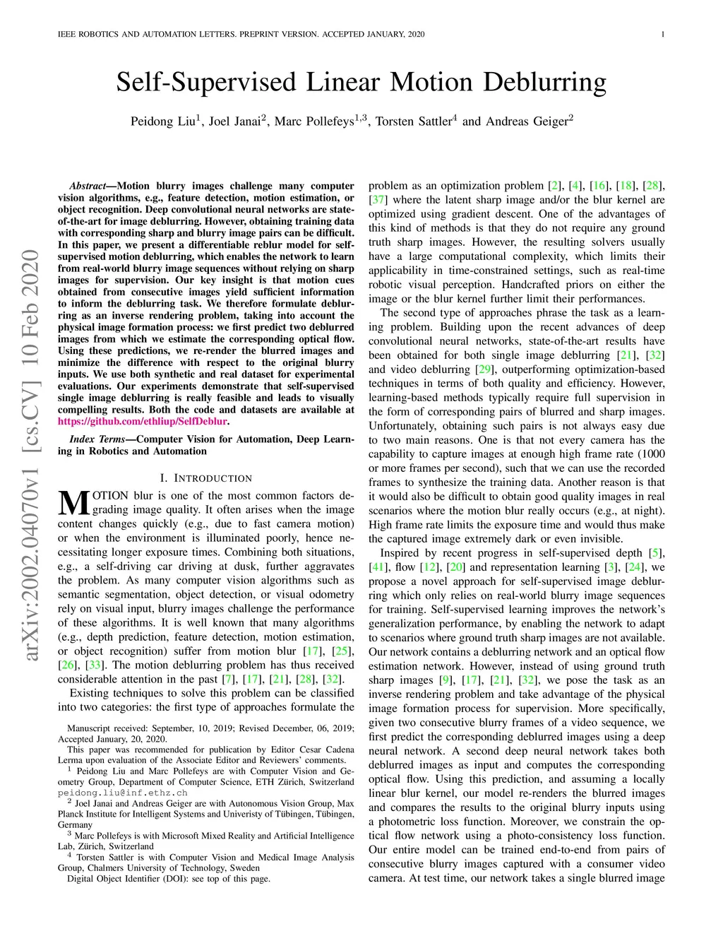 Self-Supervised Linear Motion Deblurring