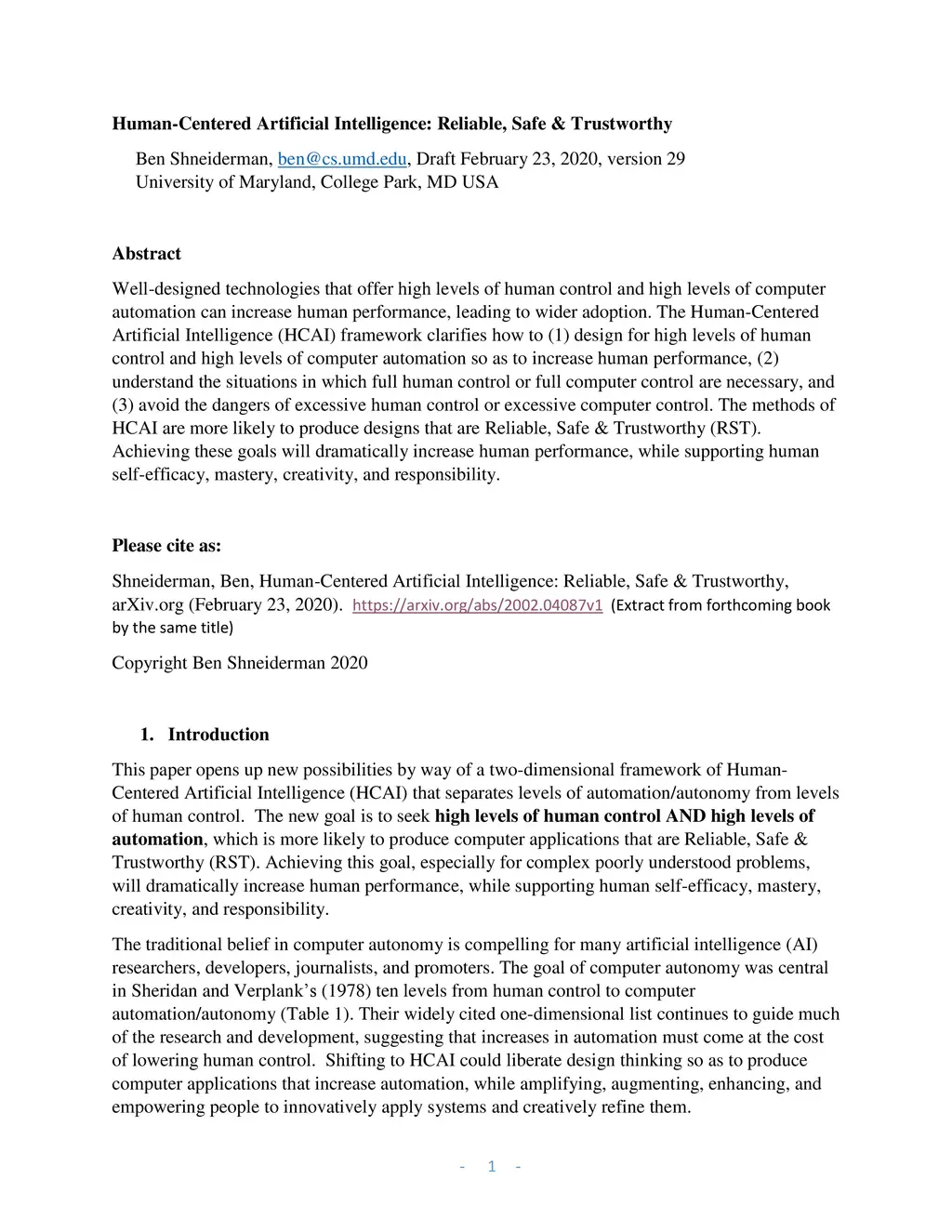 Human-Centered Artificial Intelligence: Reliable, Safe & Trustworthy
