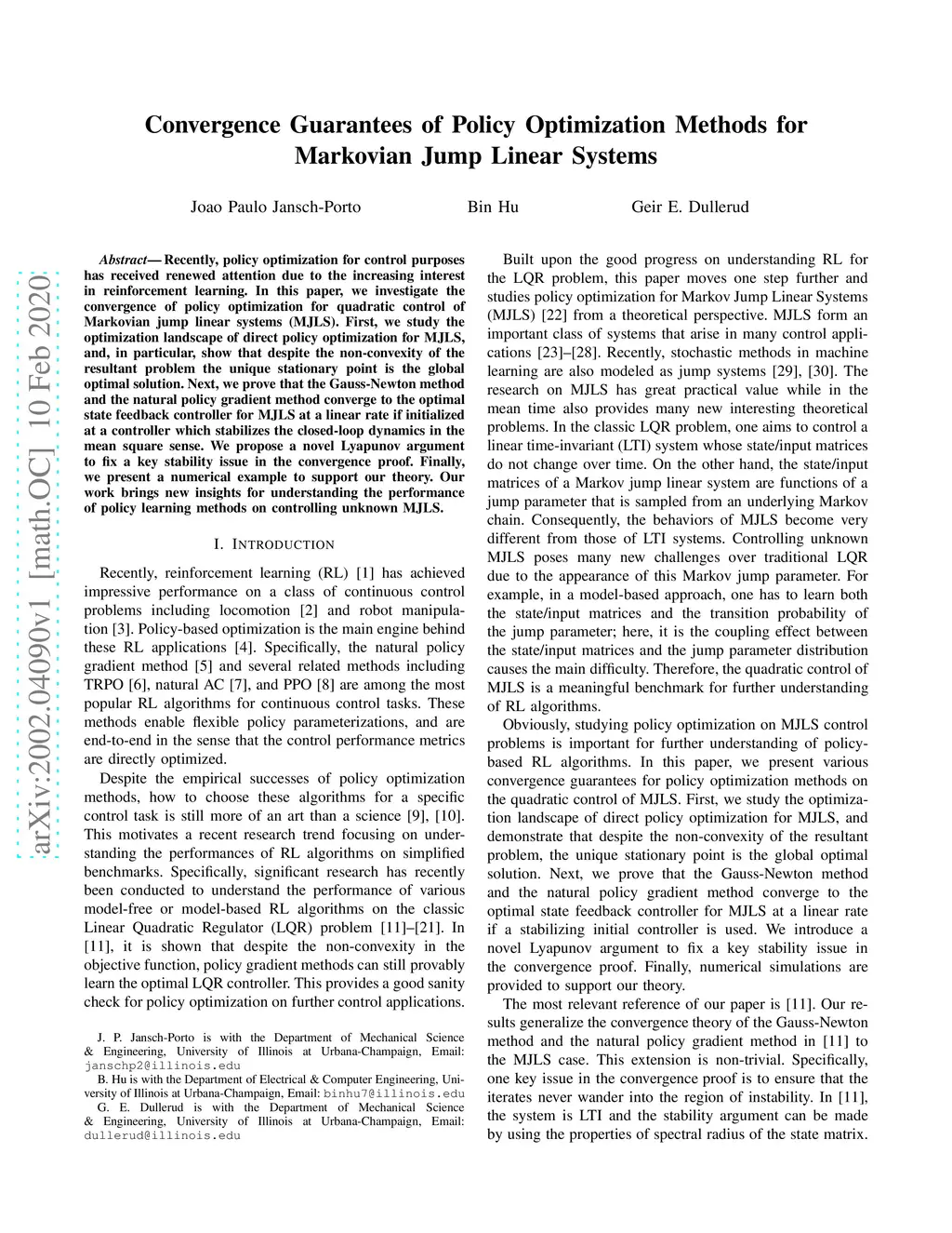 Convergence Guarantees of Policy Optimization Methods for Markovian Jump