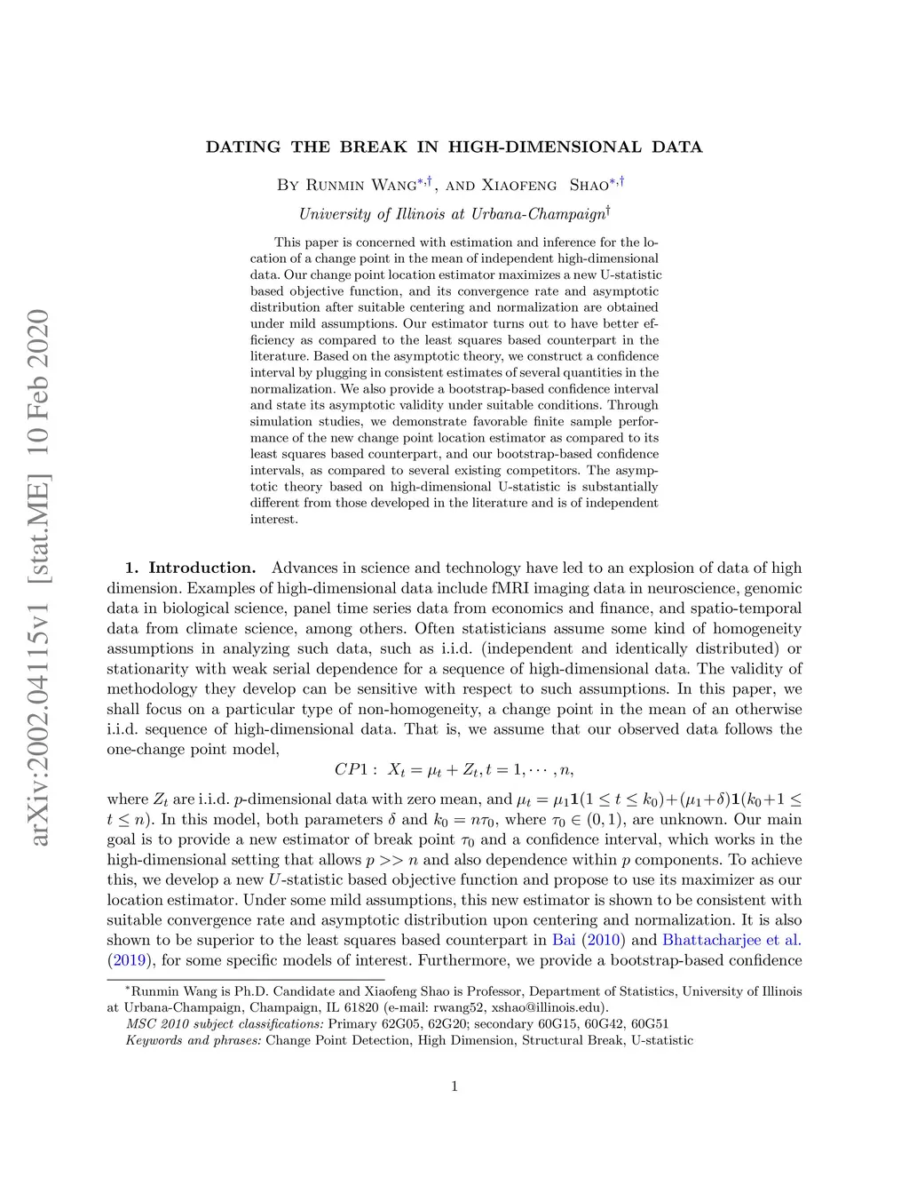 Dating the Break in High-dimensional Data
