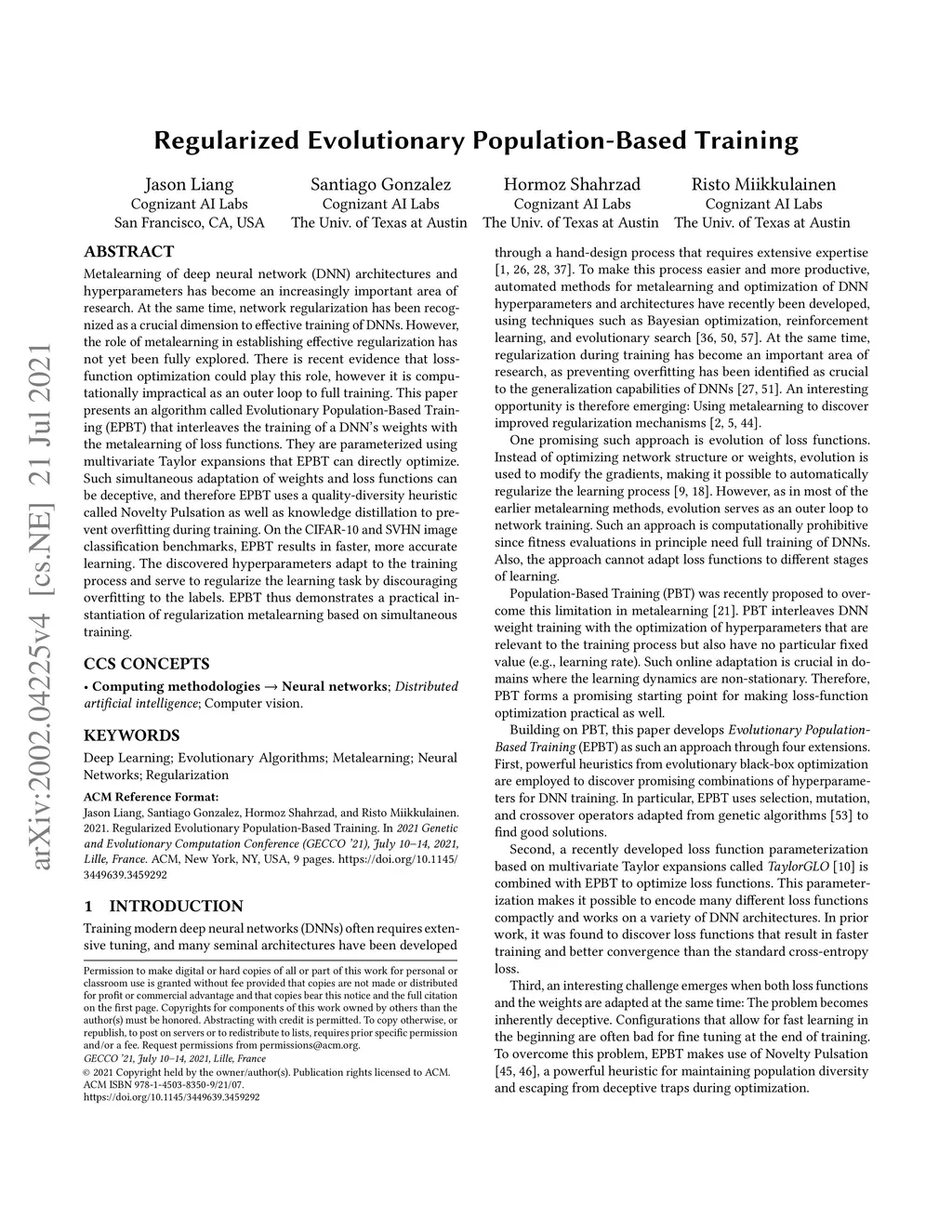 Annual Conference on Genetic and Evolutionary Computation (GECCO), 2020